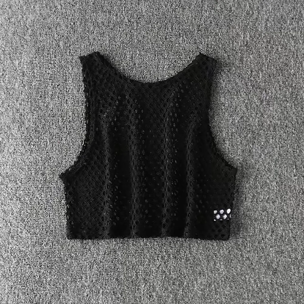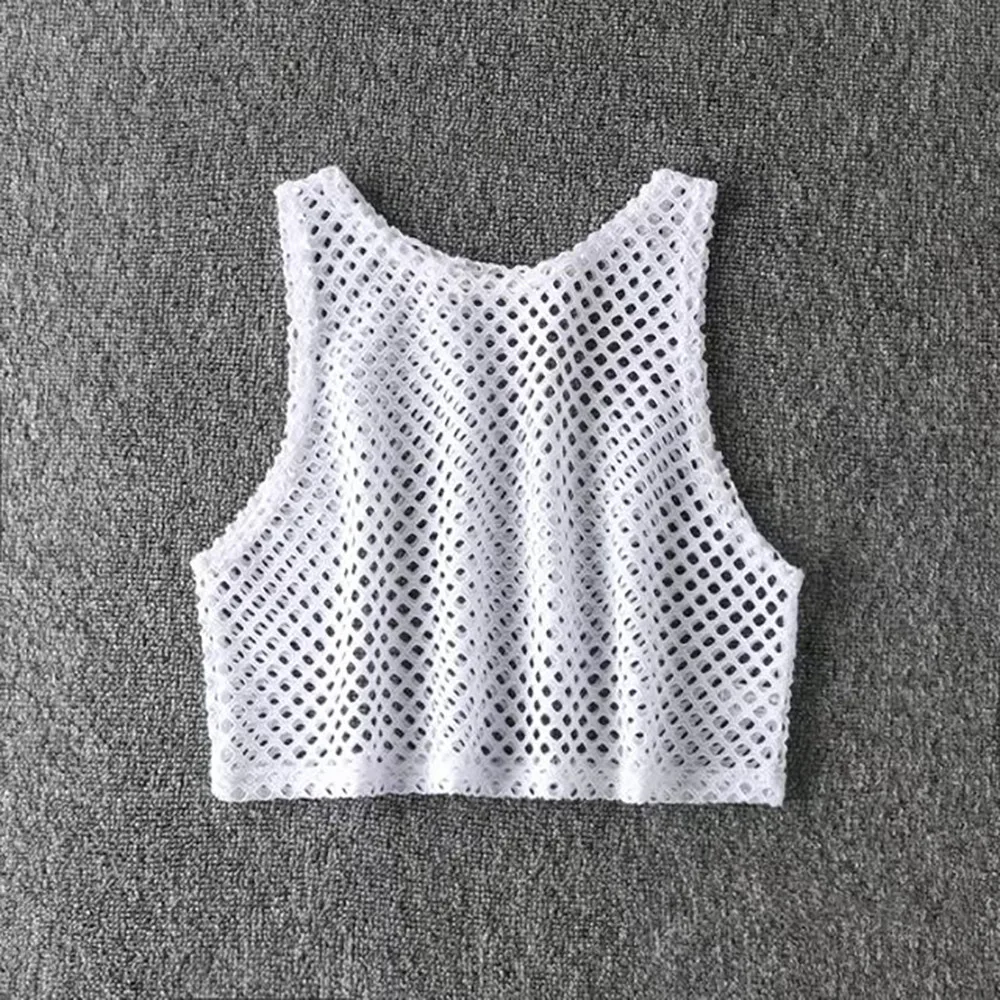 Женский укороченный топ, модная сетчатая блузка с круглым вырезом, однотонная майка, Повседневная футболка без рукавов, Vetemznt Femme 2021 525 # G