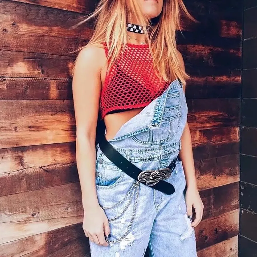 Кроп-Топ женский сетчатый с вырезами, черныйкрасный, свободный
