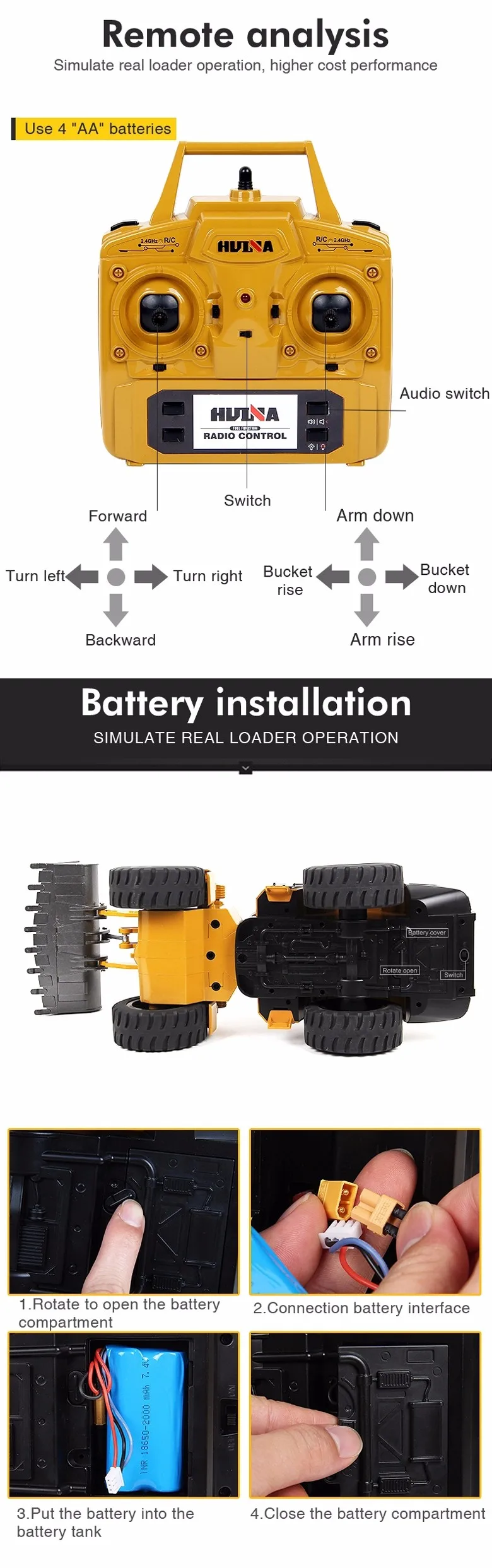 Радиоуправляемый автомобиль Huina 583 1583 1:14, 22 канала, 2,4 ГГц, бульдозер из сплава, грузовик для мальчиков, игрушки, Радиоуправляемый гидравлический Радиоуправляемый грузовик