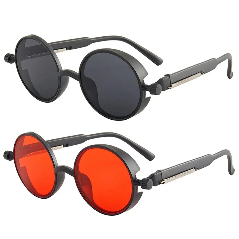 Модные солнцезащитные очки в стиле стимпанк, в круглой оправе, в стиле ретро, классические цветные линзы, солнцезащитные очки, готические панковские очки унисекс