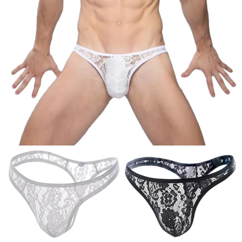 Мужские сексуальные прозрачные трусики-танга с большим мешочком, трусы, сексуальное нижнее белье, трусы с низкой талией, гей кружевные подштанники, эротическое белье