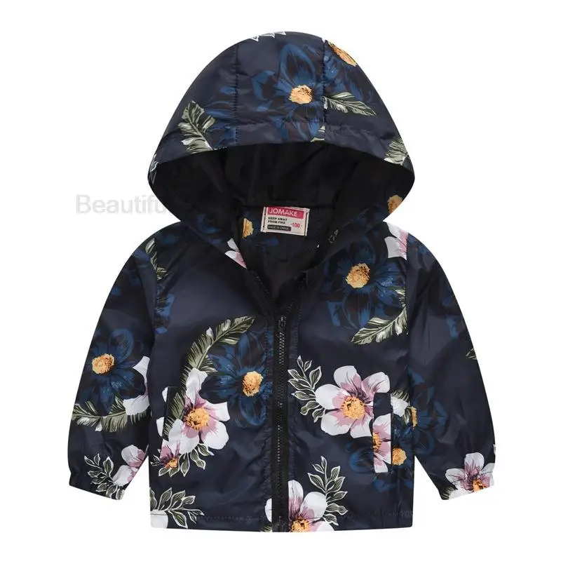 Куртка для девочек, весна-осень 2018, пальто с капюшоном и цветочны...