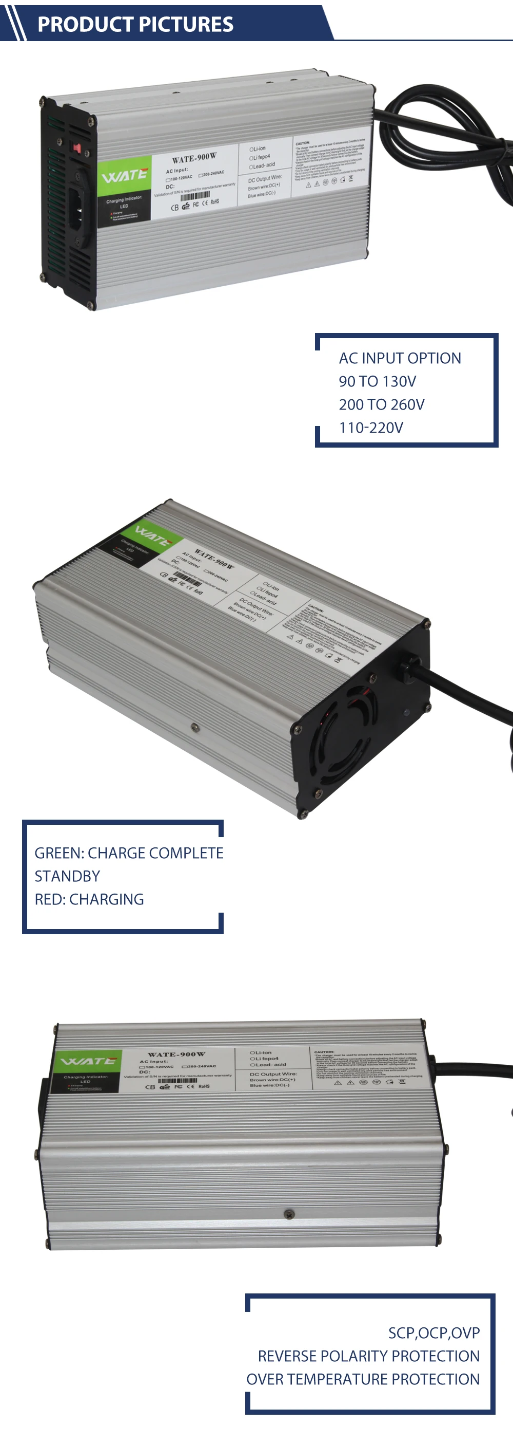 2. Выходная мощность: 900 Вт3. Выходное напряжение постоянного тока: 58,4 в 15A4. Светодиодный светильник-индикатор с логотипом: красный и зеленый, инструкции по двойному цвету, красная зарядка зеленого цвета или в режиме ожидания5. Эффективность: >85%6.MTBF: 30000 часов7. Основные Экспортные рынки: Азия/Восточная Европа/Средний Восток/Африка/Австралия/Северная Америка/Центральная/Южная Америка/Западная Европа