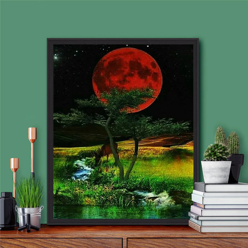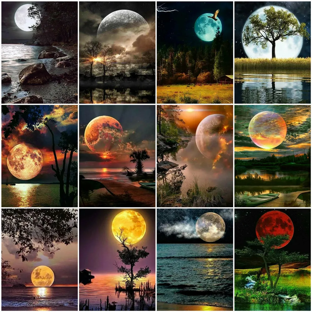 Алмазная мозаика HUACAN 5D с изображением Луны, моря, полная алмазная живопись, вышивка, пейзаж, персонализированный подарок, украшение спальни