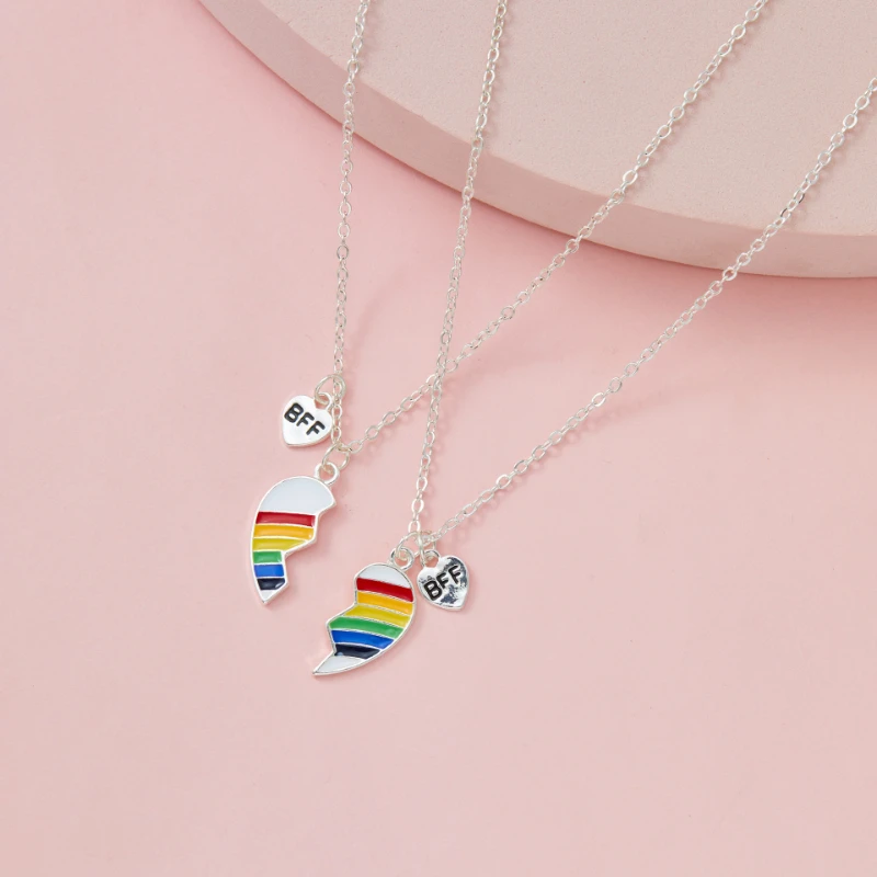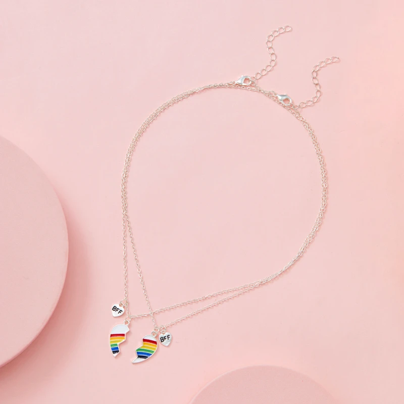 Ожерелье с подвеской в виде масляной радуги в виде белого сердца