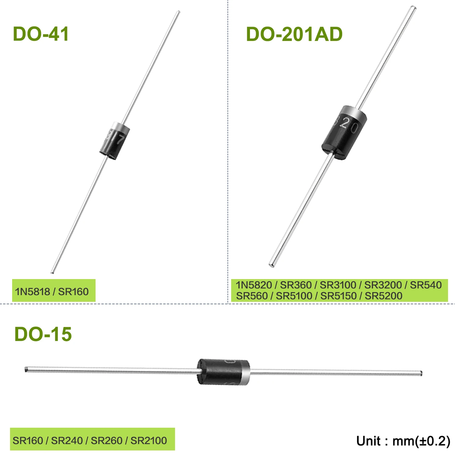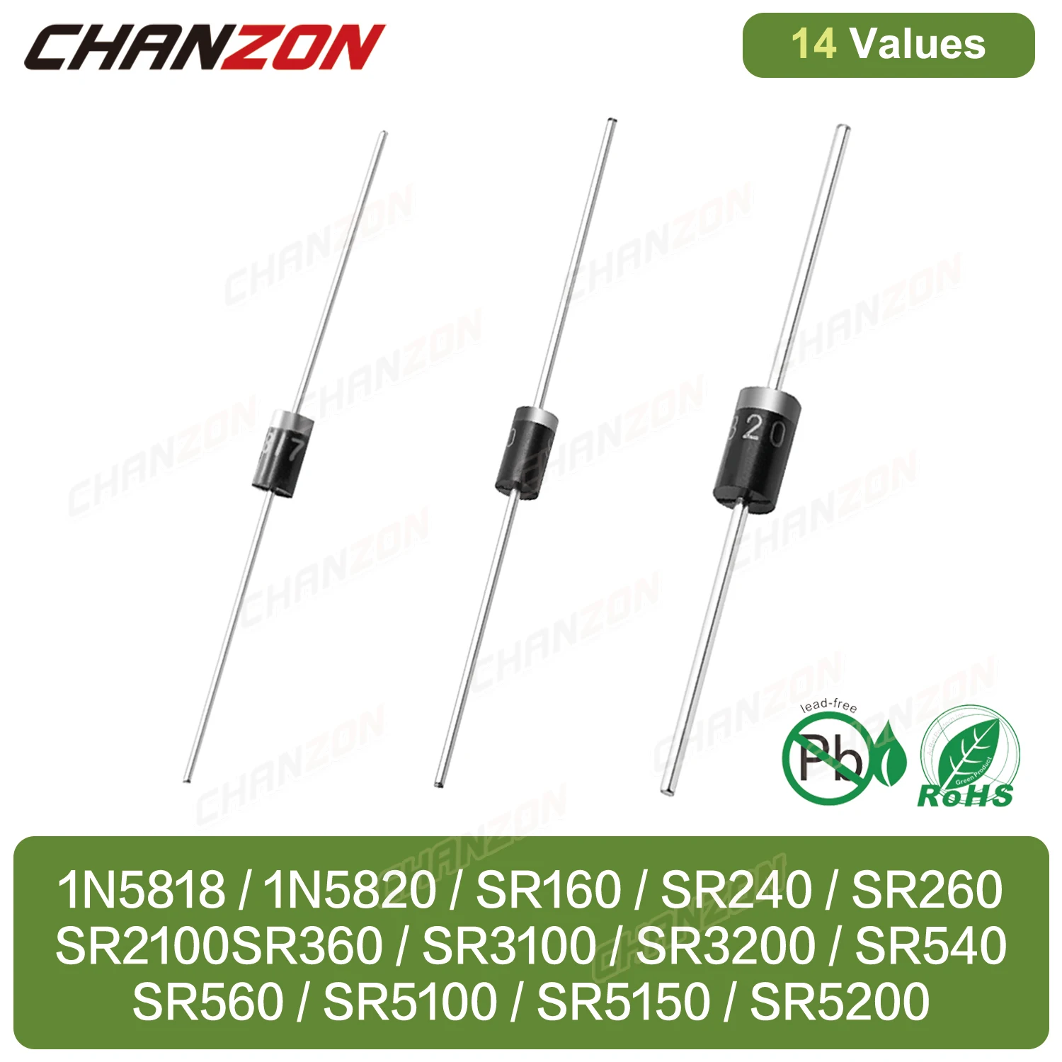 17 значений Диод выпрямителя барьера шоттки 1N5819 1N5822 1N5817 SR5100 SR3100 SR560 SR5200 1N5818 SR360 SR160 SR540 SR5150 SR240