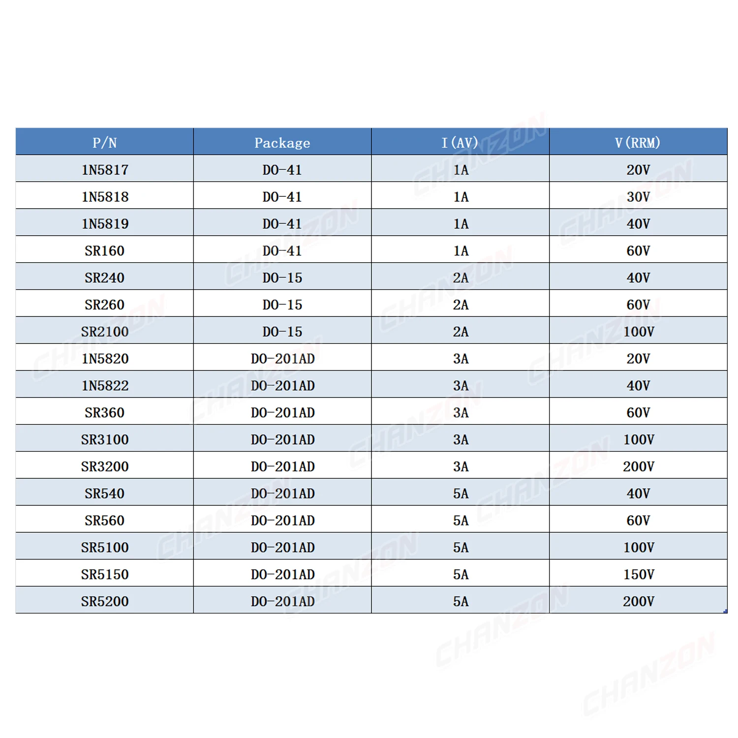 Номер модели1N 5819 5822 5817 5818 5820 SB240 SB5150 1N5820 IN5820 SR260 SB2100