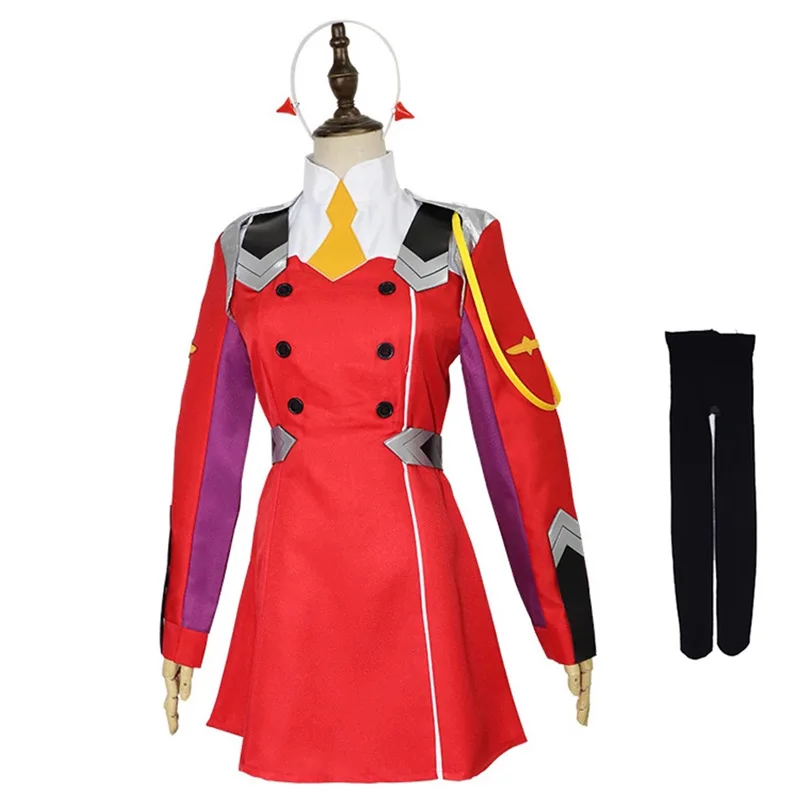 Женское платье для косплея Zero Two 02, платье Zero Two, рубашка, пояс, галстук, повязка на голову, униформа из японского аниме, костюм на Хэллоуин