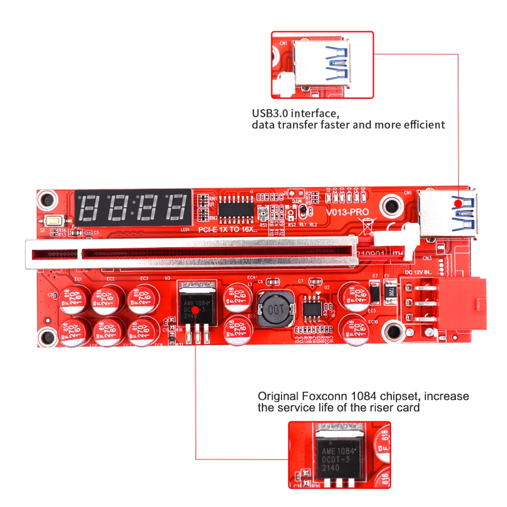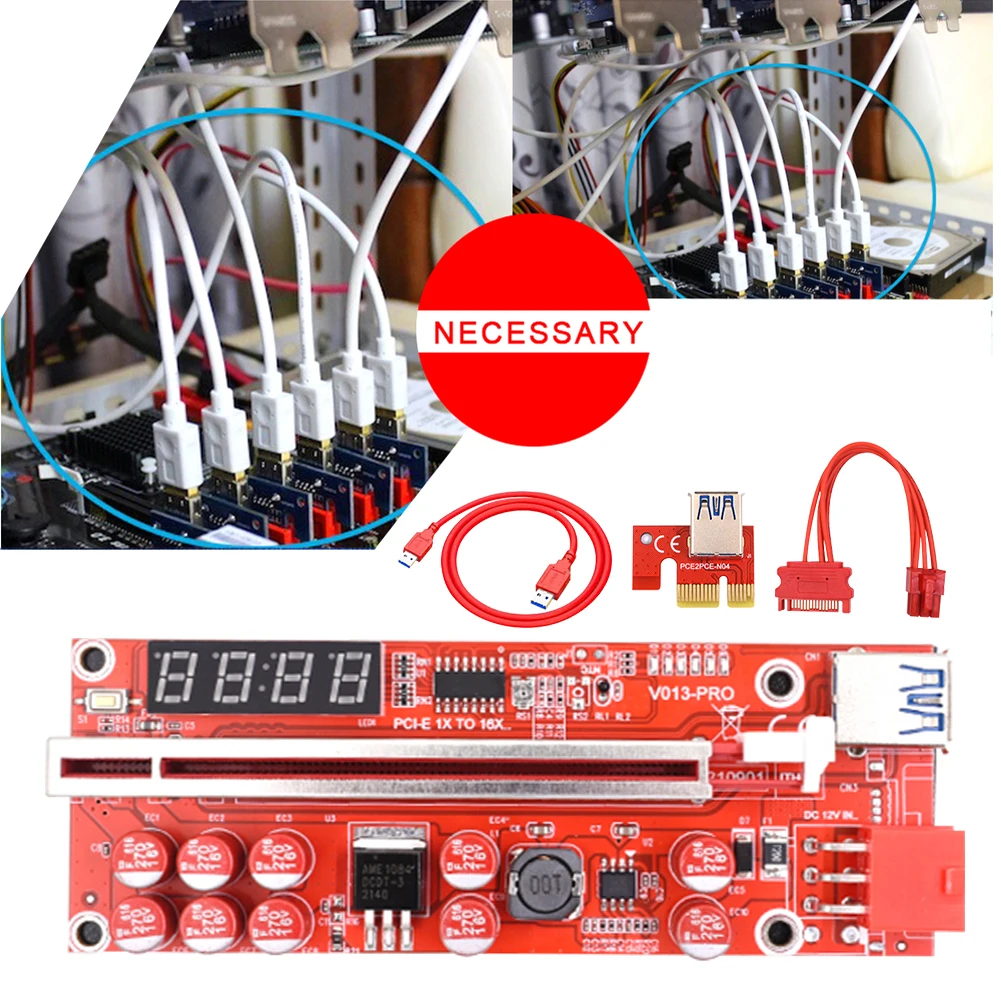 Кабель питания TISHRIC V013 Pro PCIE Riser 013, 1-6 шт., кабель для майнинга x1 x16 SATA на 6 контактов, кабель USB 3,0