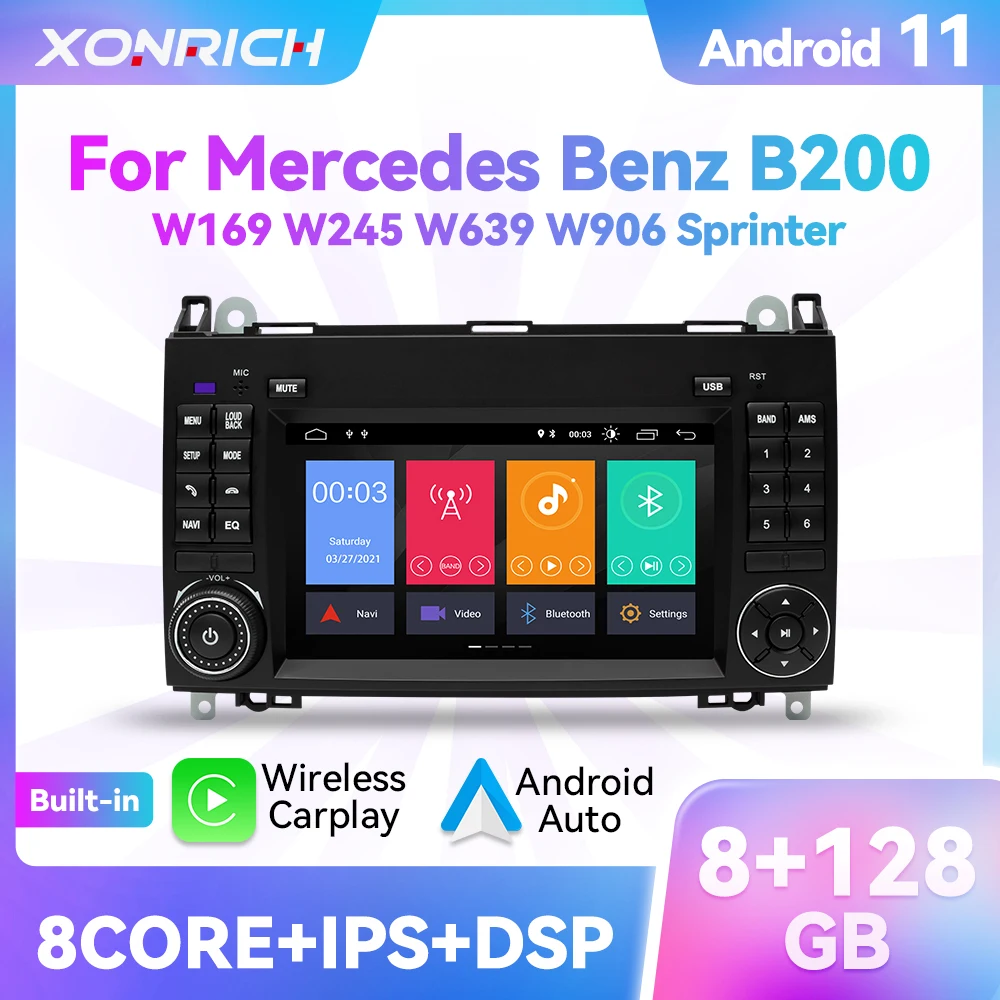 Автомобильное радио Carplay 8 ГБ 128 ГБ Android 11 для Mercedes Benz B200 Sprinter W906 W639 AB Class W169 W245 Viano Vito DSP GPS