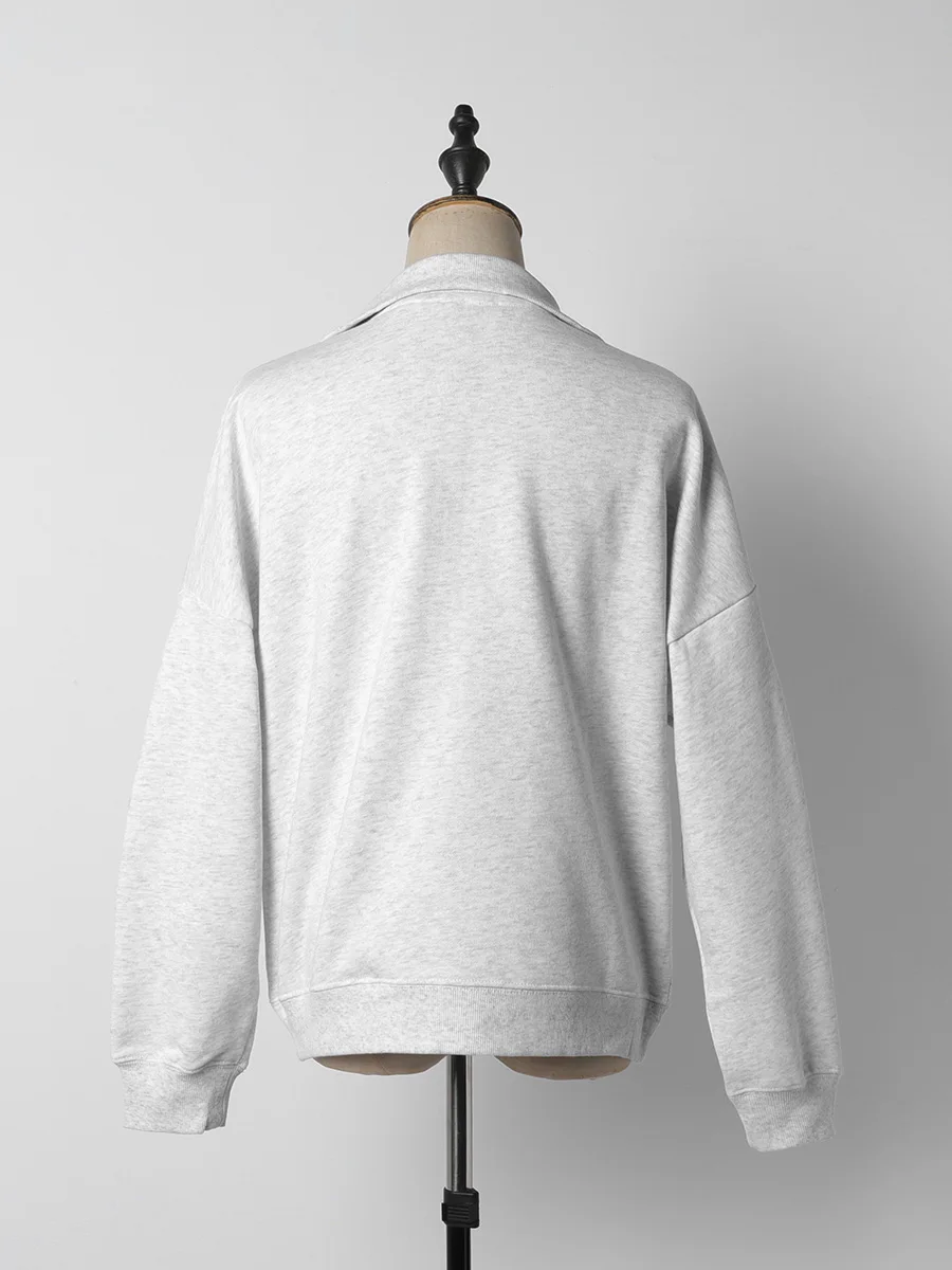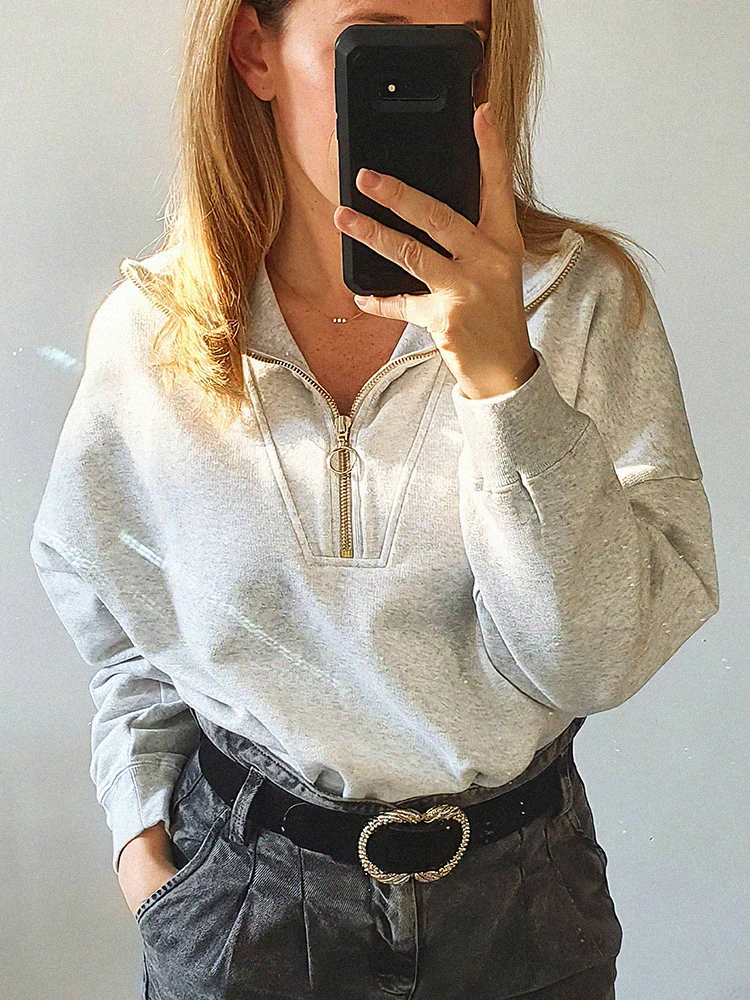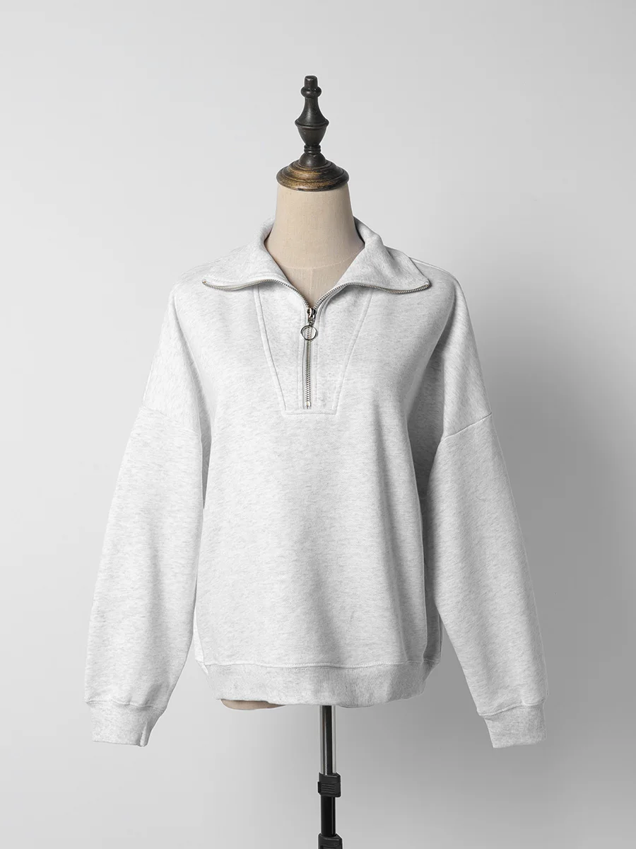 Серый меланжевый свитшот, сезон осень-зима, длинные рукава, высокий воротник, органическая ткань, повседневные шикарные женские свитшоты