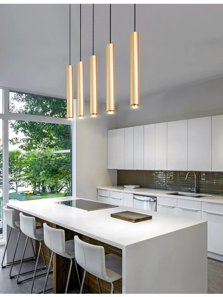 Современные светодиодсветодиодный подвесные светильники с регулируемым фокусом, освещение 7 Вт 12 Вт для кухонного островка, столовой, бара, цилиндрическая длинная трубчатая Подвесная лампа