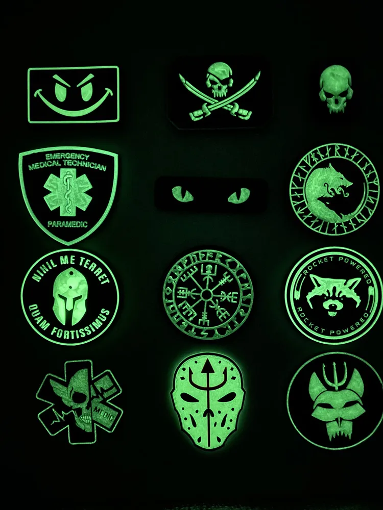 Светящиеся нашивки из ПВХ, 1 шт., светящиеся в темноте резиновые узоры, идентичные кошачьи глаза, медицинская Военная повязка на руку, тактическая эмблема, значок