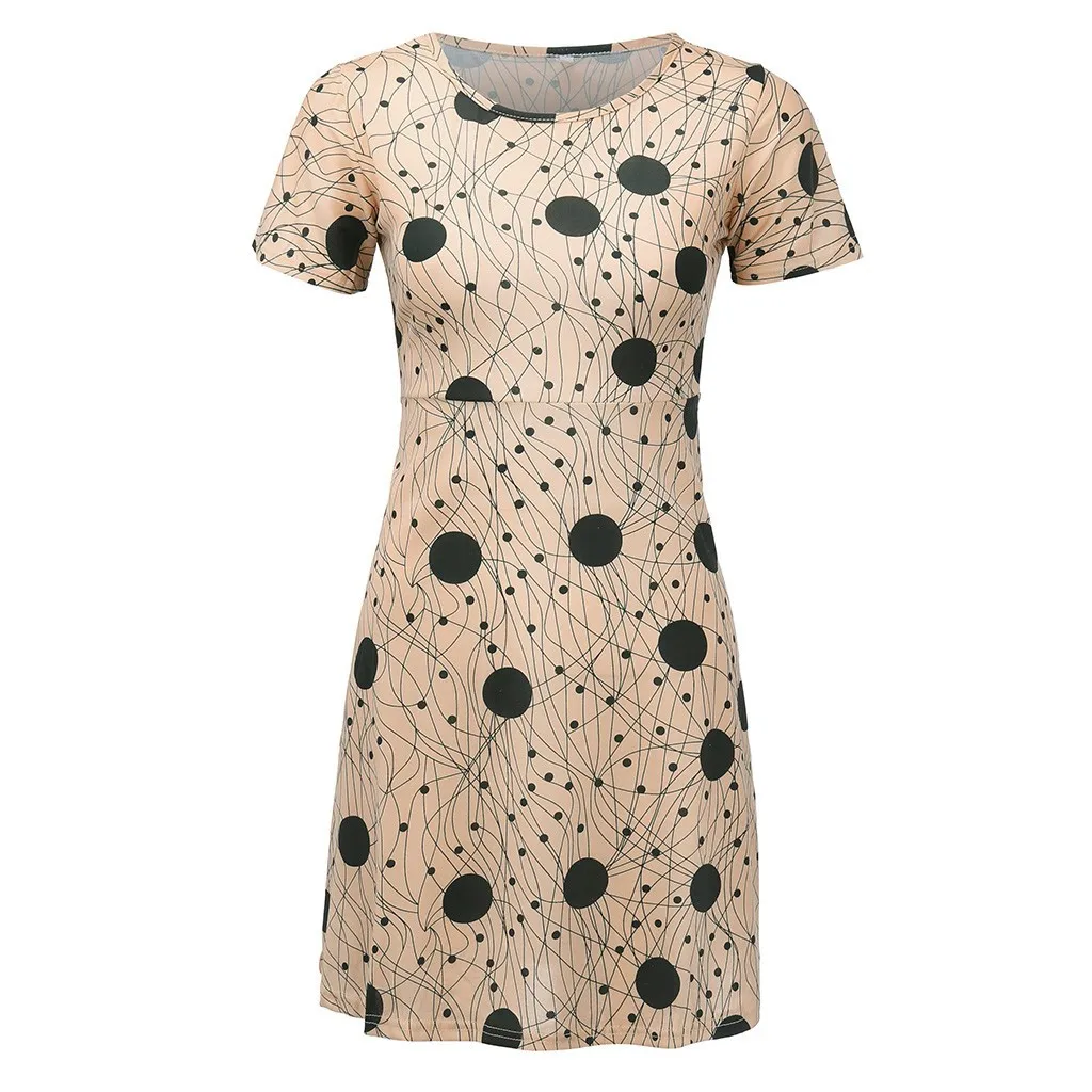 Женское модное летнее элегантное эластичное платье с круглым вырезом и коротким рукавом