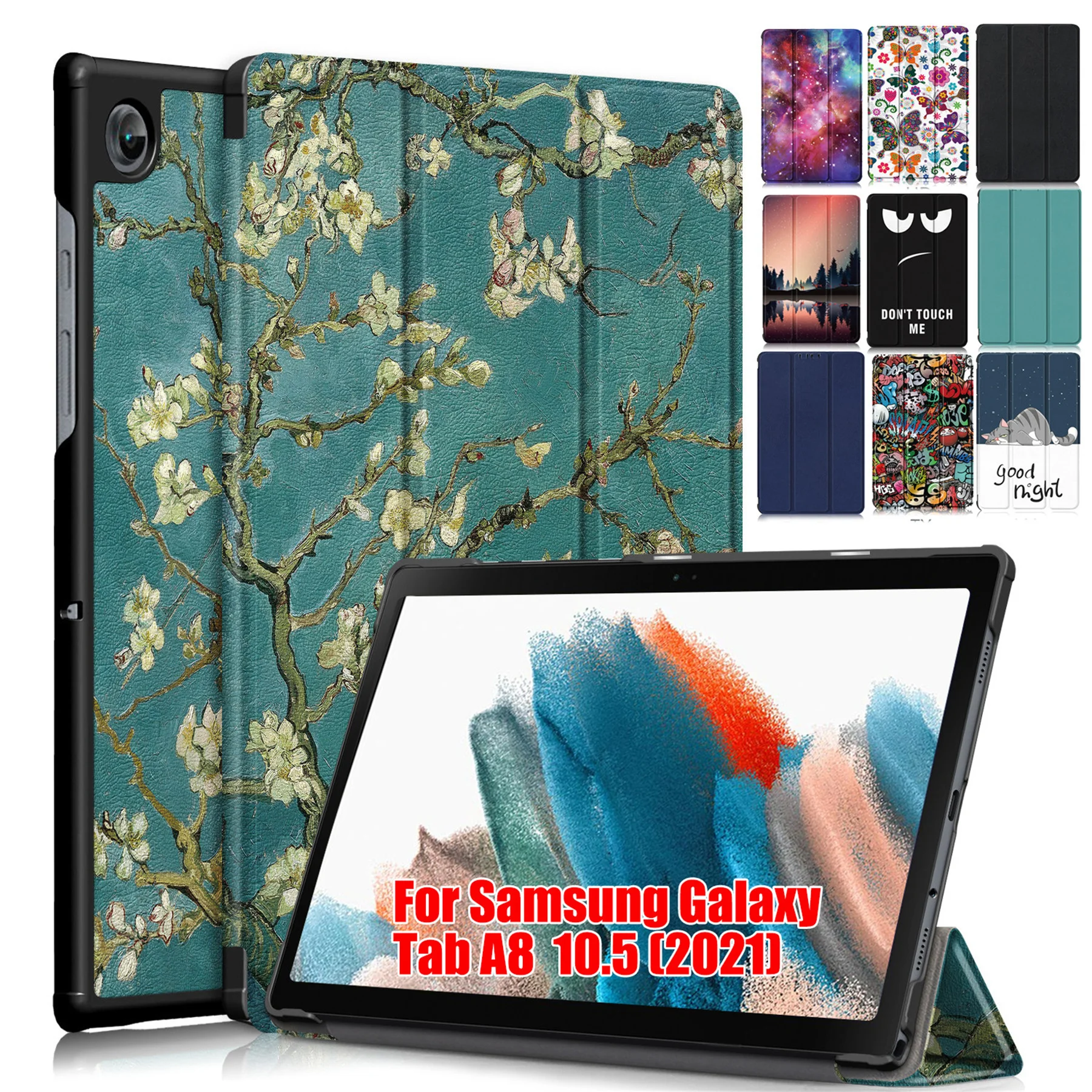 Магнитный чехол для планшета для Samsung Galaxy Tab A8 2021, чехол из 10,5 кожи, трехслойный чехол с функцией автоматического сна, тонкий защитный чехол с цветочным рисунком