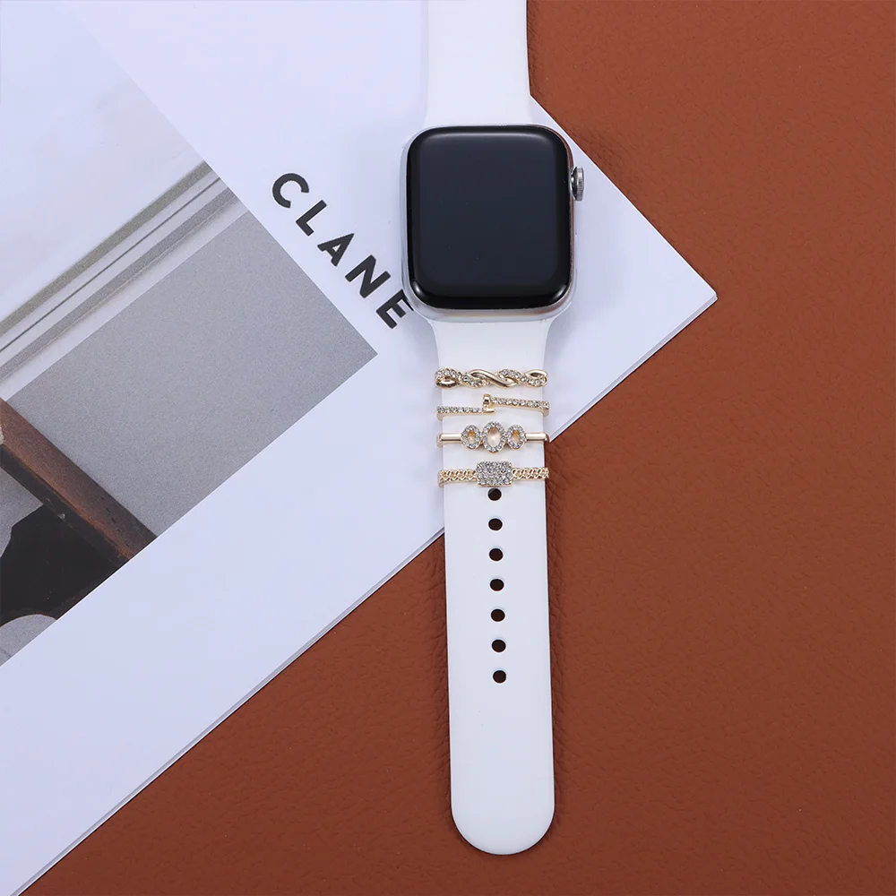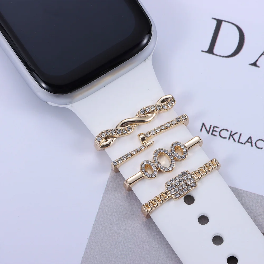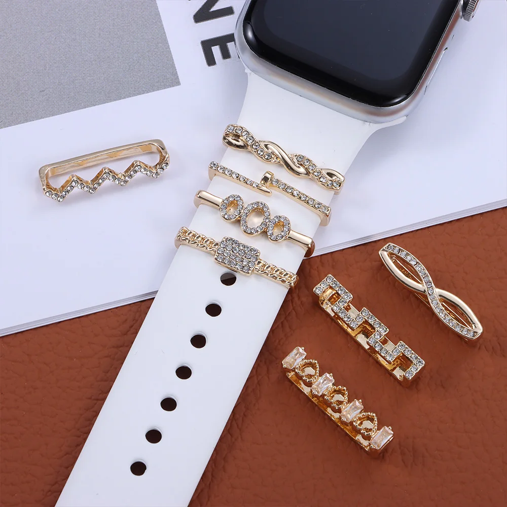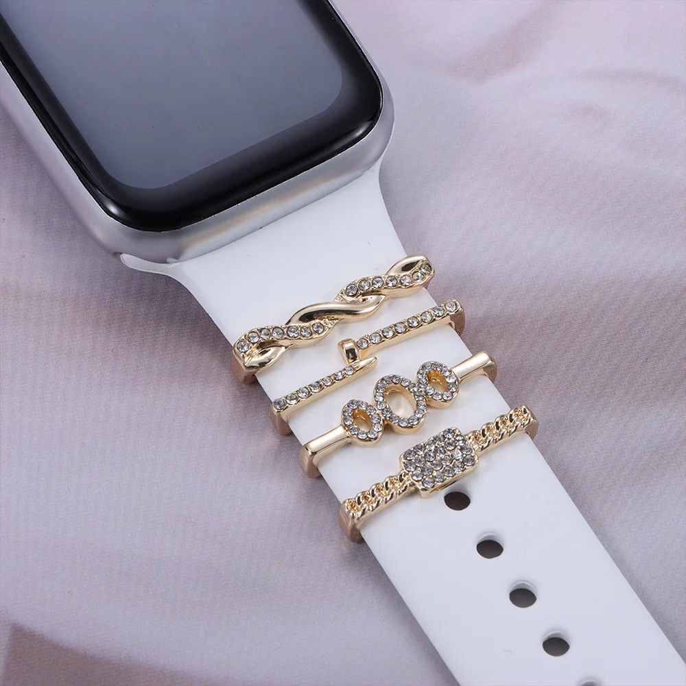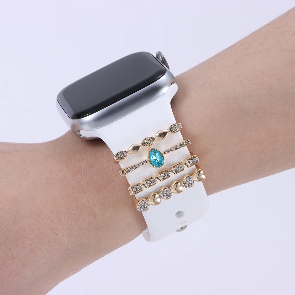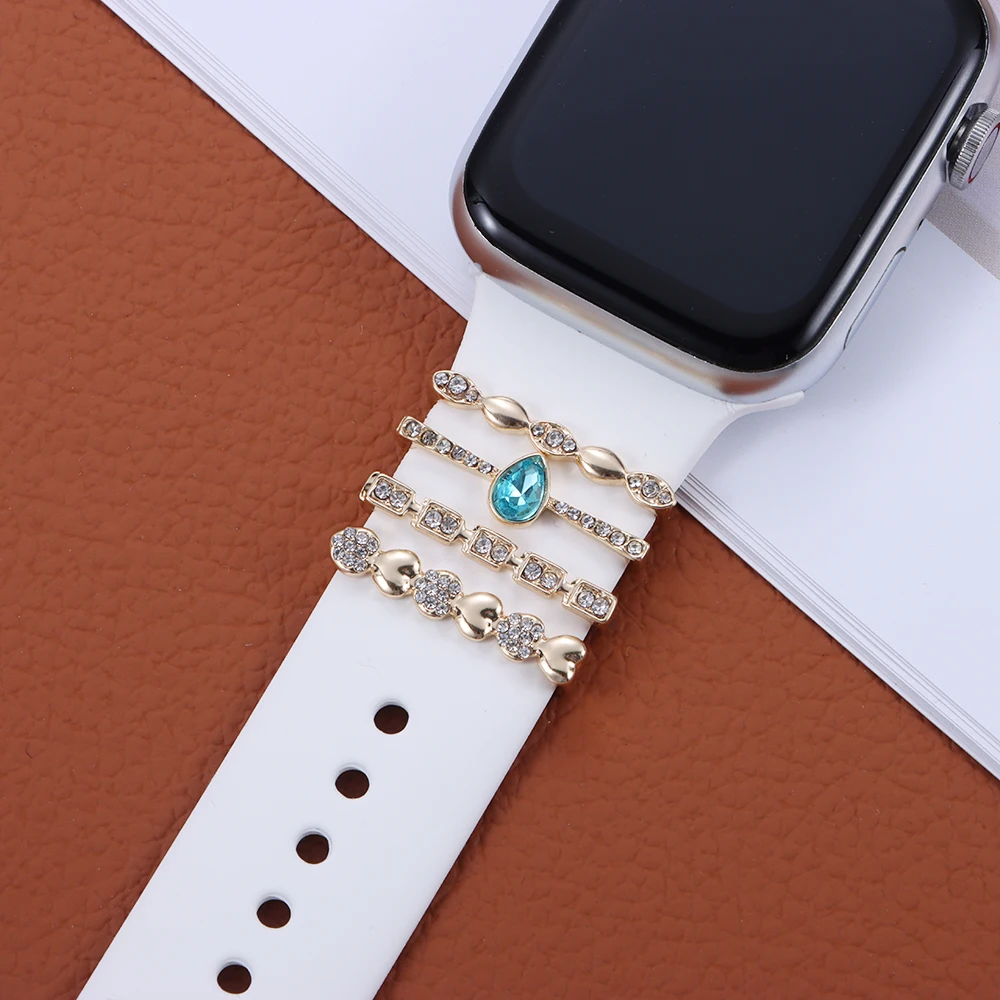 Металлические алмазные подвески, декоративное кольцо для Apple Watch, ремешок, орнамент, силиконовый ремешок для умных часов, аксессуары для iwatch, браслет