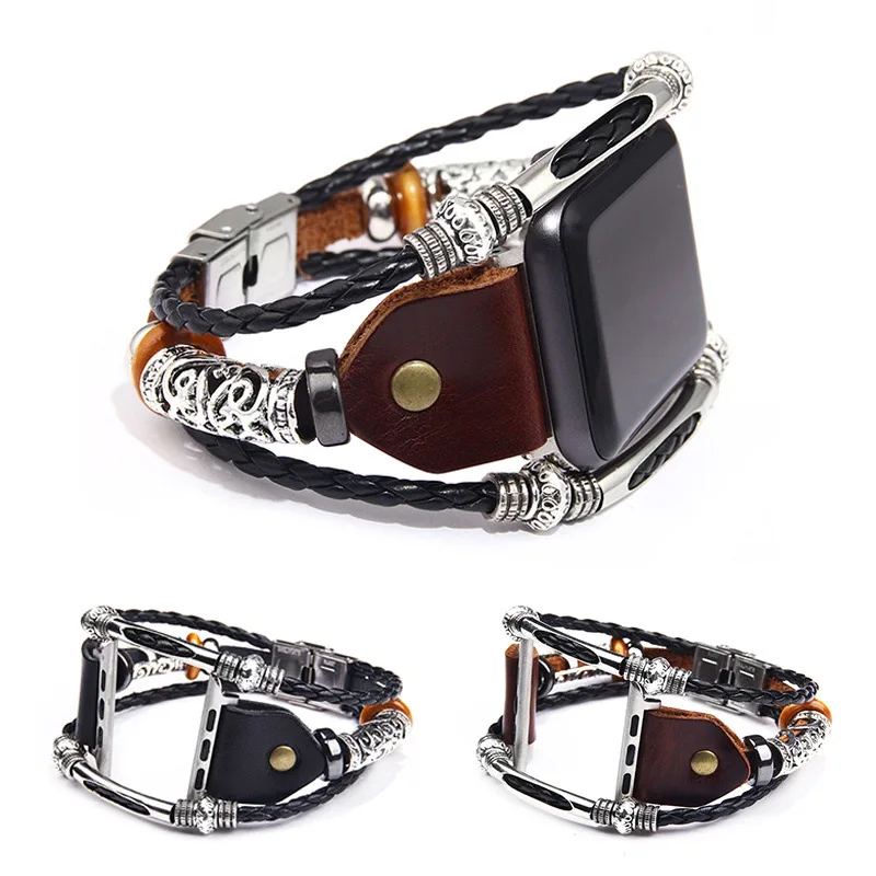 Винтажный кожаный браслет с бусинами Kirykle для Apple Watch серии ...