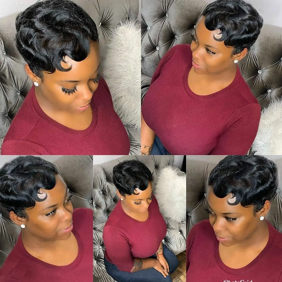 Бразильские короткие парики из человеческих волос, волнистые прически на палец для черных женщин, милый дешевый парик, парики Remy, парики ручной работы