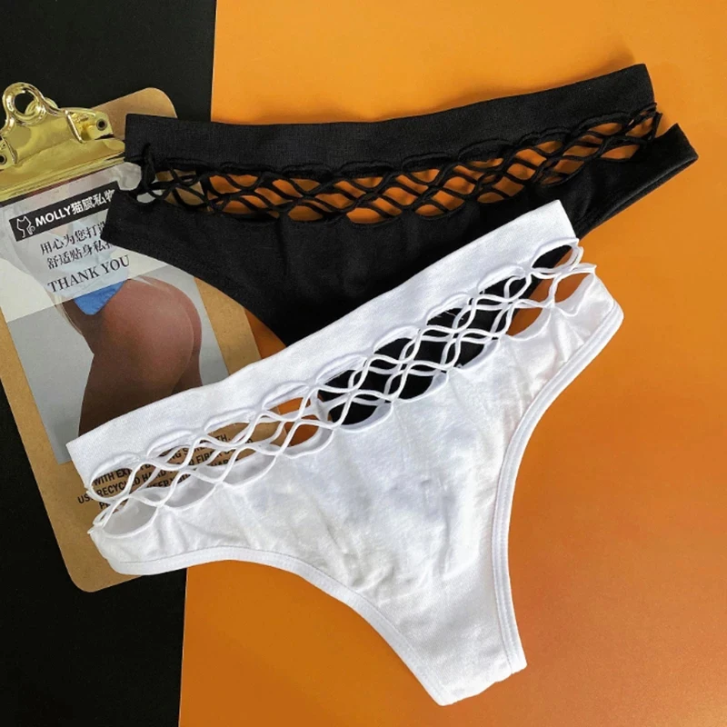 Сетчатые хлопковые стринги с вырезами, женские трусики, сексуальное...