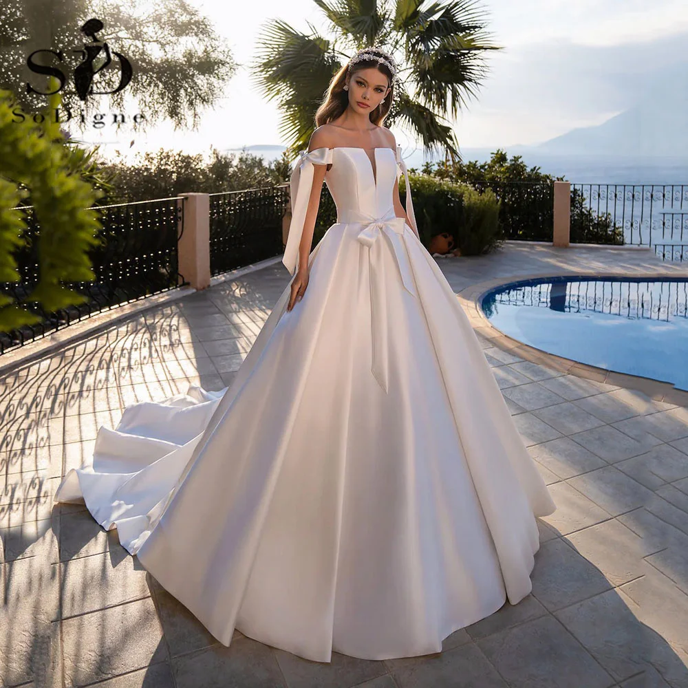 Атласное Бальное Платье soworthy, простое кружевное свадебное плать...