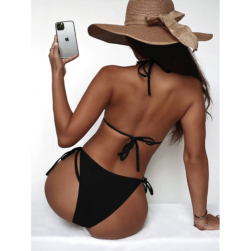 Сексуальный бикини с завязками, однотонный купальник, женские стринги, купальный костюм с лямкой на шее, купальник conjunto biquinis feminino trajes de bao mujer 2022