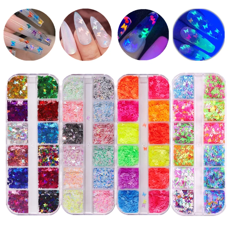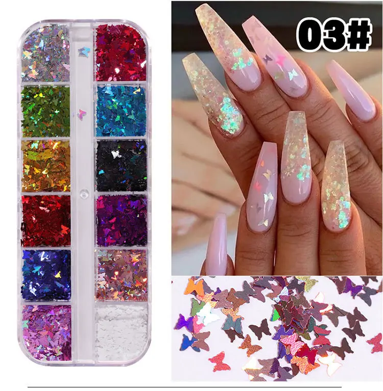 Голографические Блестки для ногтей в виде бабочки, 1 набор, 12 цвет...