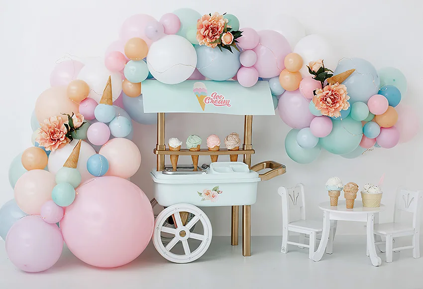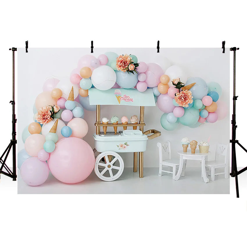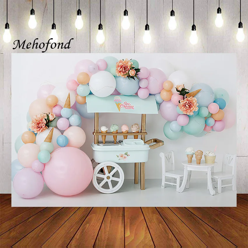 Фон для фотосъемки Mehefond с изображением мороженого розовых воздушных шаров для маленьких девочек торт на день рождения разбивной портрет Фотостудия