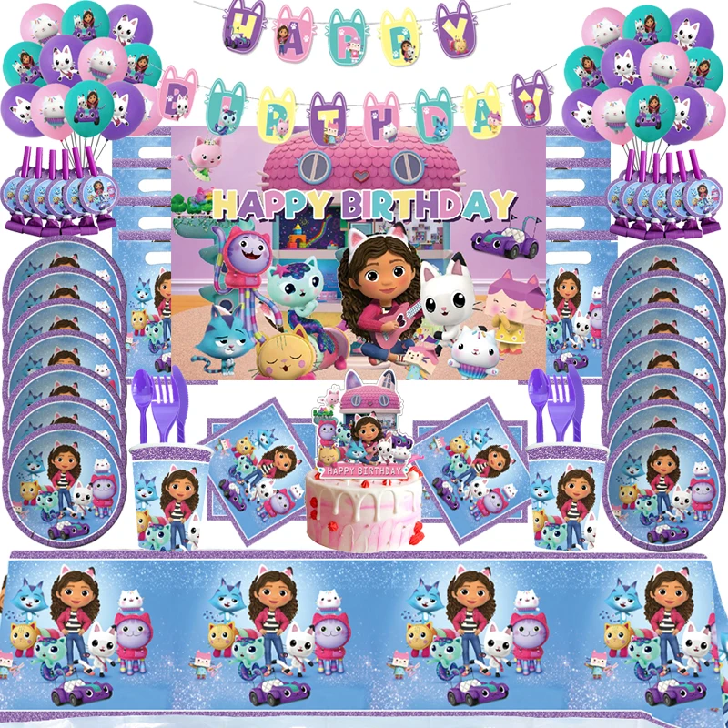 Мультяшный кукольный домик Gabby, украшение на день рождения с кошками, воздушный шар, одноразовая посуда для детей, кукольный домик, фигурки, товары Вечерние