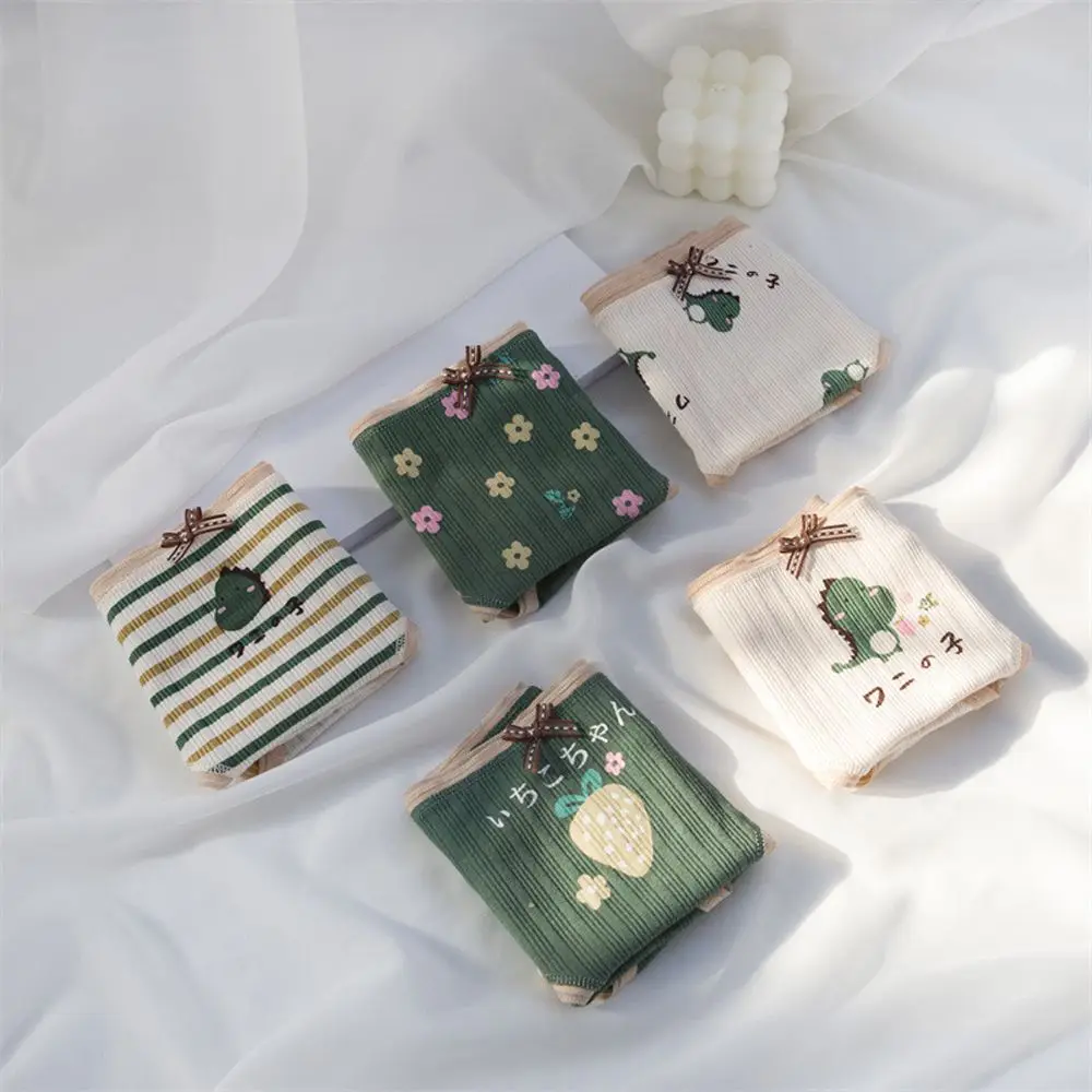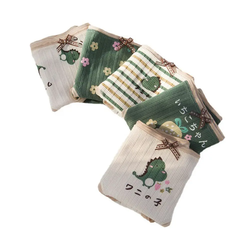 Японские Симпатичные темно-зеленые трусики динозавров, хлопковые дышащие женские разноцветные трусики