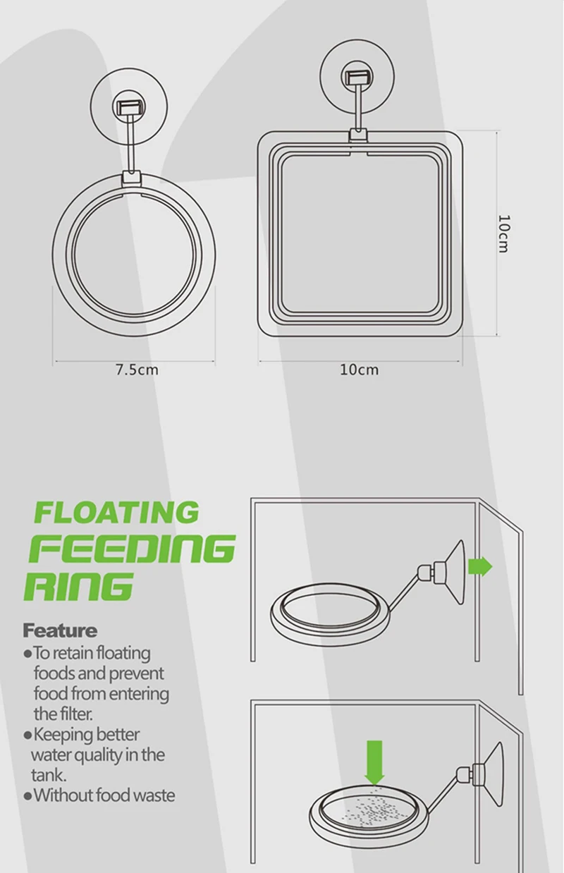 1. Это кормовое кольцо поставляется в комплекте с присоской и пластиковым плавающим кольцом для сохранения плавающей пищиИ помогает предотвратить попадание пищи в фильтр.2. Улучшает эффективность подачи и поддерживает лучшее качество воды путем уменьшения.Количество несъеденных продуктов разлагается в гравии и фильтрующей системе.