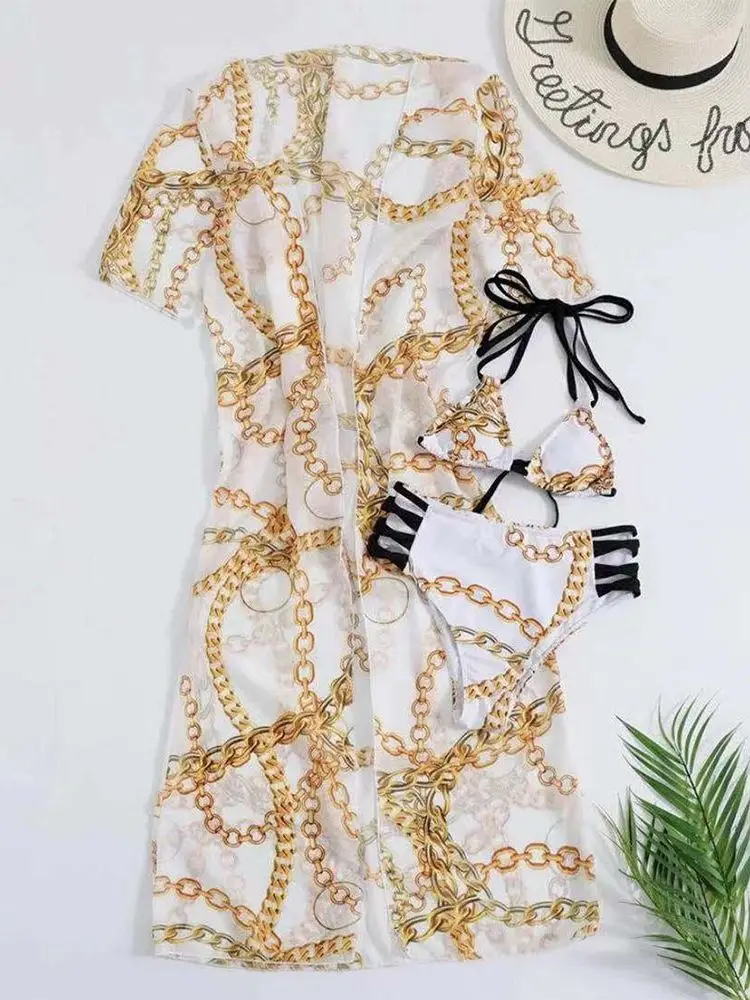 Новое поступление 2022, женская накидка с золотой цепочкой, купальник с коротким рукавом, банный халат, накидка, Пляжное Платье, женский купальный костюм, туника