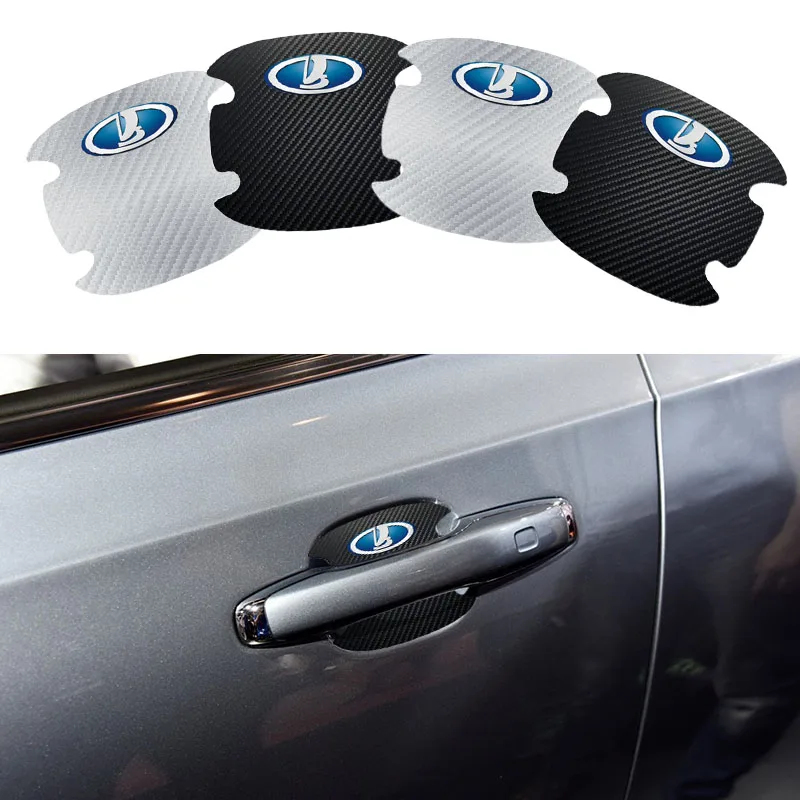 4 шт., защитные наклейки на дверную ручку автомобиля, из углеродного волокна