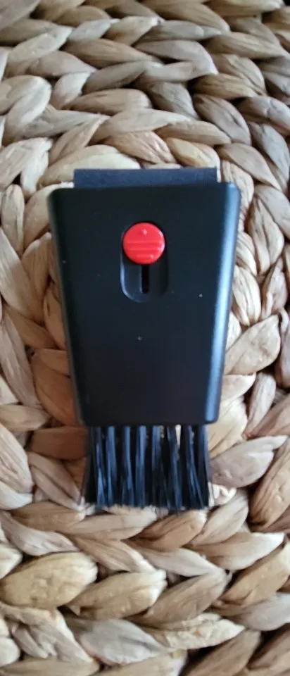 Щетка жесткая: минус царапает мягкие пластики плюс через щель достает до вентиляторов можно чистить. Губку попробовал но не пользуюсь, собирает пыль и оставляют полоски пыли.