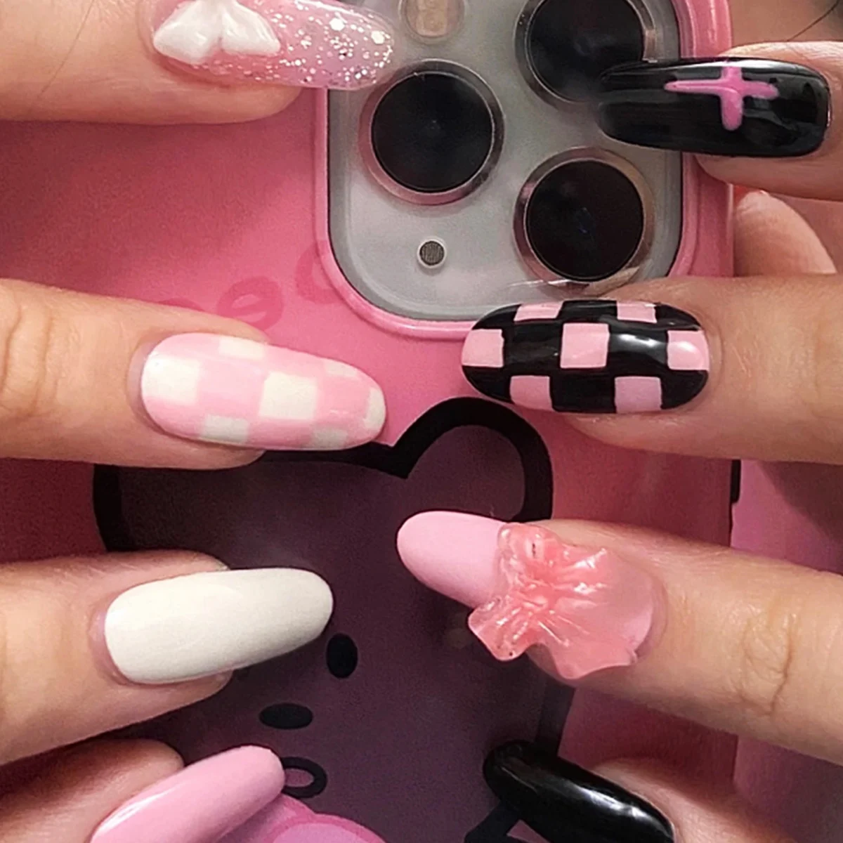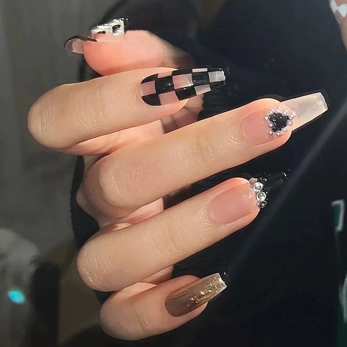 24 шт.корт. Красивые накладные ногти с проверенным рисунком полное покрытие накладные ногти с клеем длинные носимые накладные ногти с инструментами для ношения