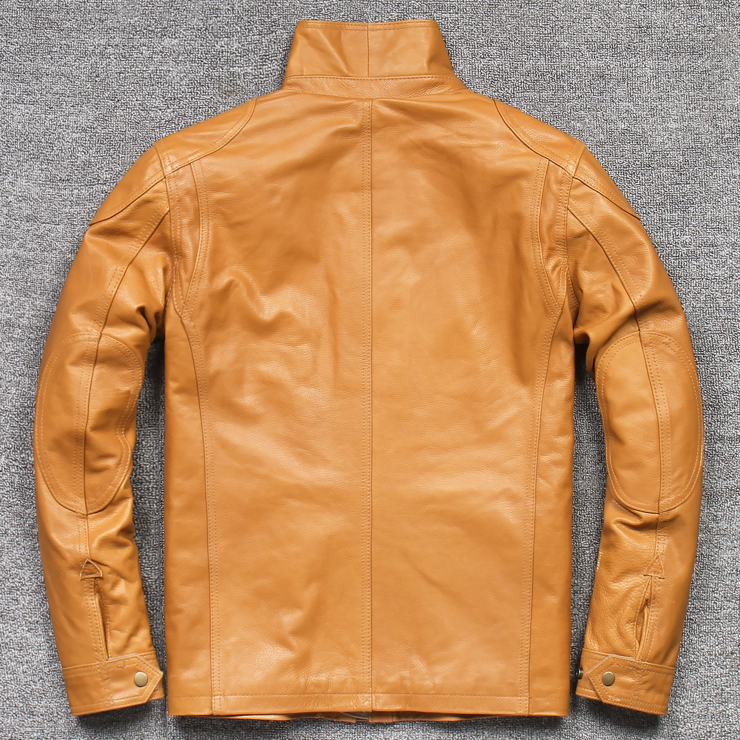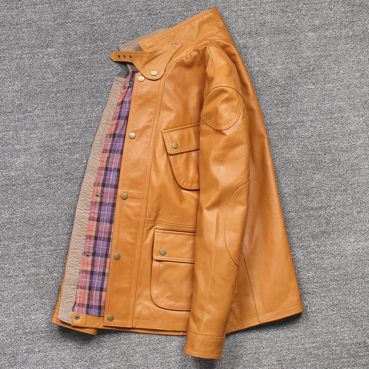 Бесплатная доставка DHL, мужская куртка из коровьей кожи цвета хаки в стиле ретро, желтая, американская Повседневная модная кожаная куртка с карманами