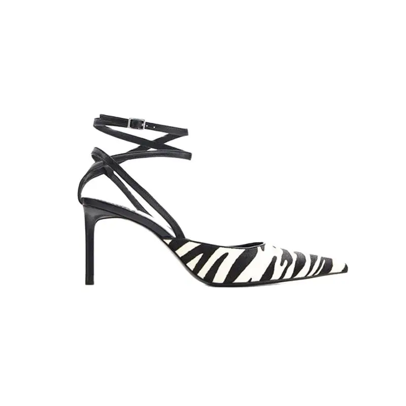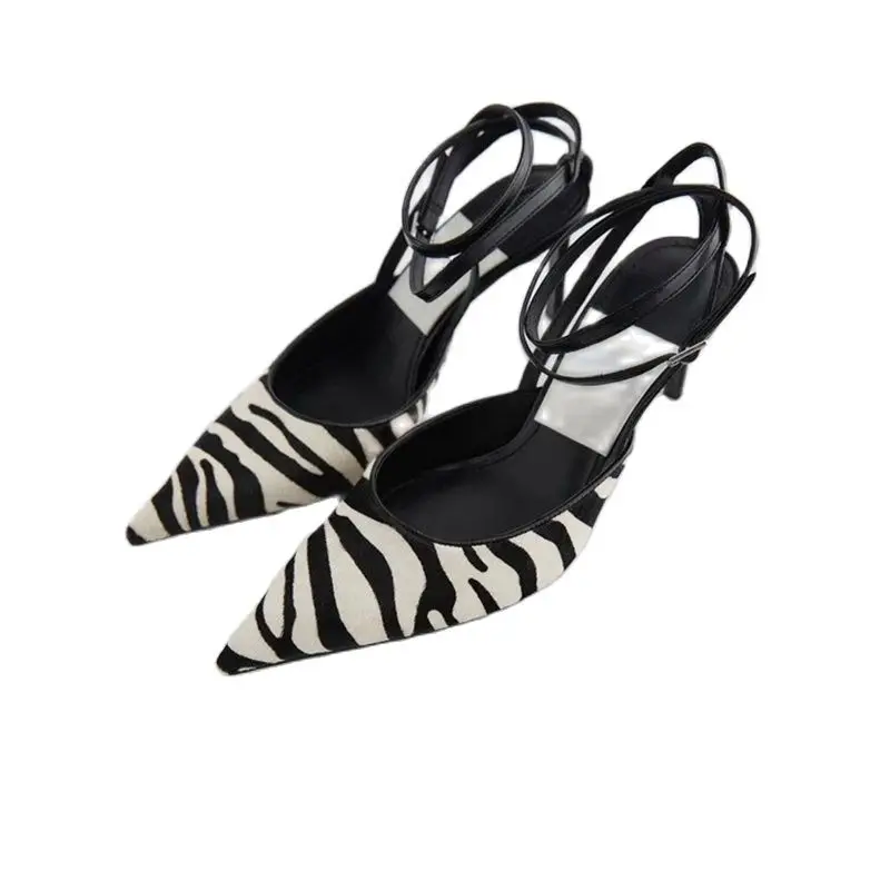 Женские сандалии на шпильке ZaZa 2022 года с зеброй, женские повседневные туфли на высоком каблуке с закрытым носком, женские туфли-лодочки с острым носком