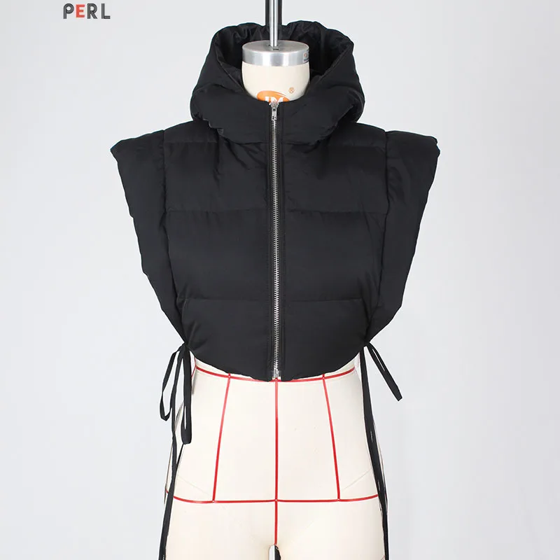 Жилет Perl без рукавов с капюшоном и боковой утечкой, короткий жилет на бретельках, универсальная модная куртка для хлеба, женская одежда