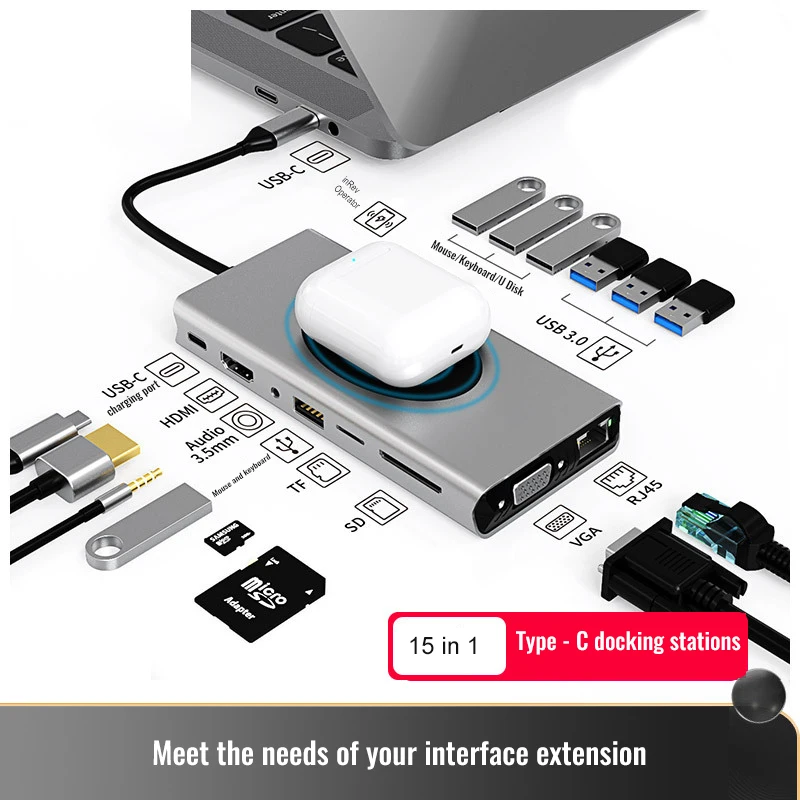 Док-станция 15 в 1 с USB Type-C и кардридером для SDTF-карт