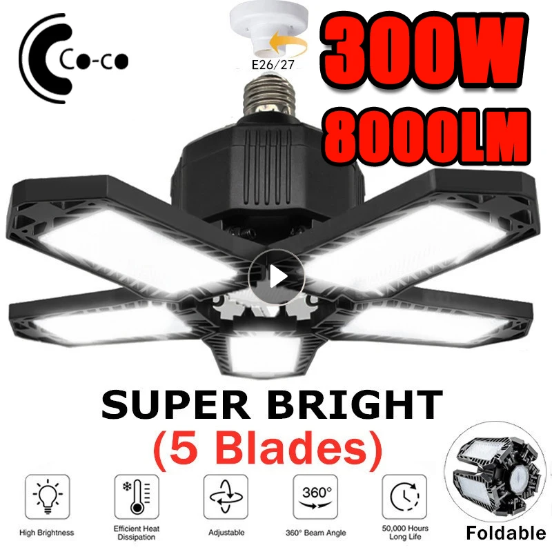 Светодиодный гаражный светильник 300 Вт E26 E27, деформируемая Складная потолочная лампа для гаража, светоизлучающая поверхность для аварийного освещения гаража, склада