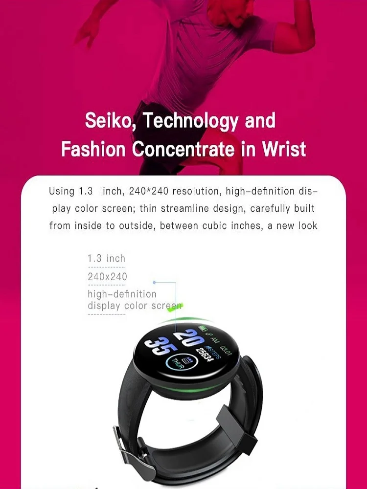 Точность изготовления ремешка: 1,44 дюймовый дисплей, ультратонкий обтекаемый дизайн, чтобы создать стильный внешний вид.