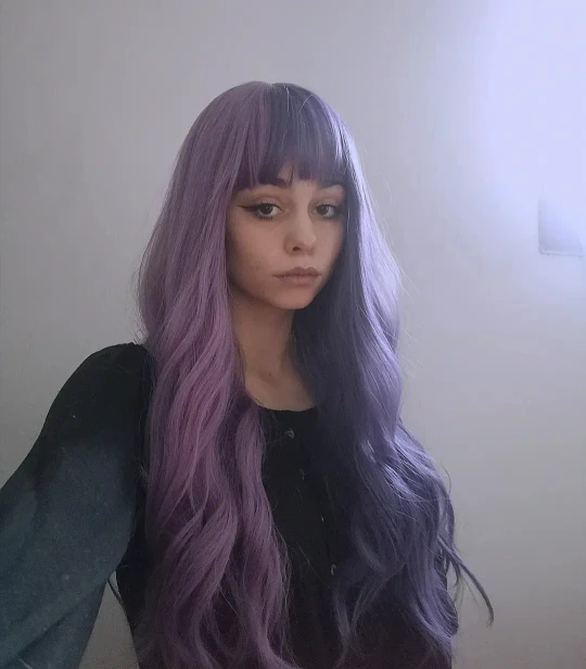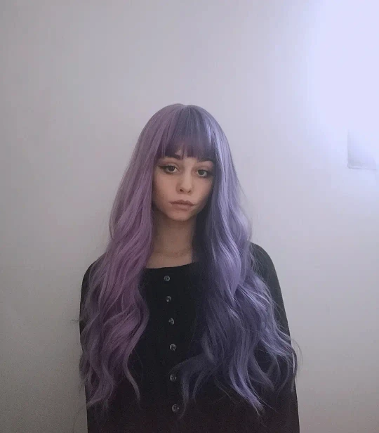Фиолетовый длинный волнистый синтетический парик с челкой Косплей Рождество Хэллоуин волосы два тона Омбре парик для женщин с глубокой волной термостойкий