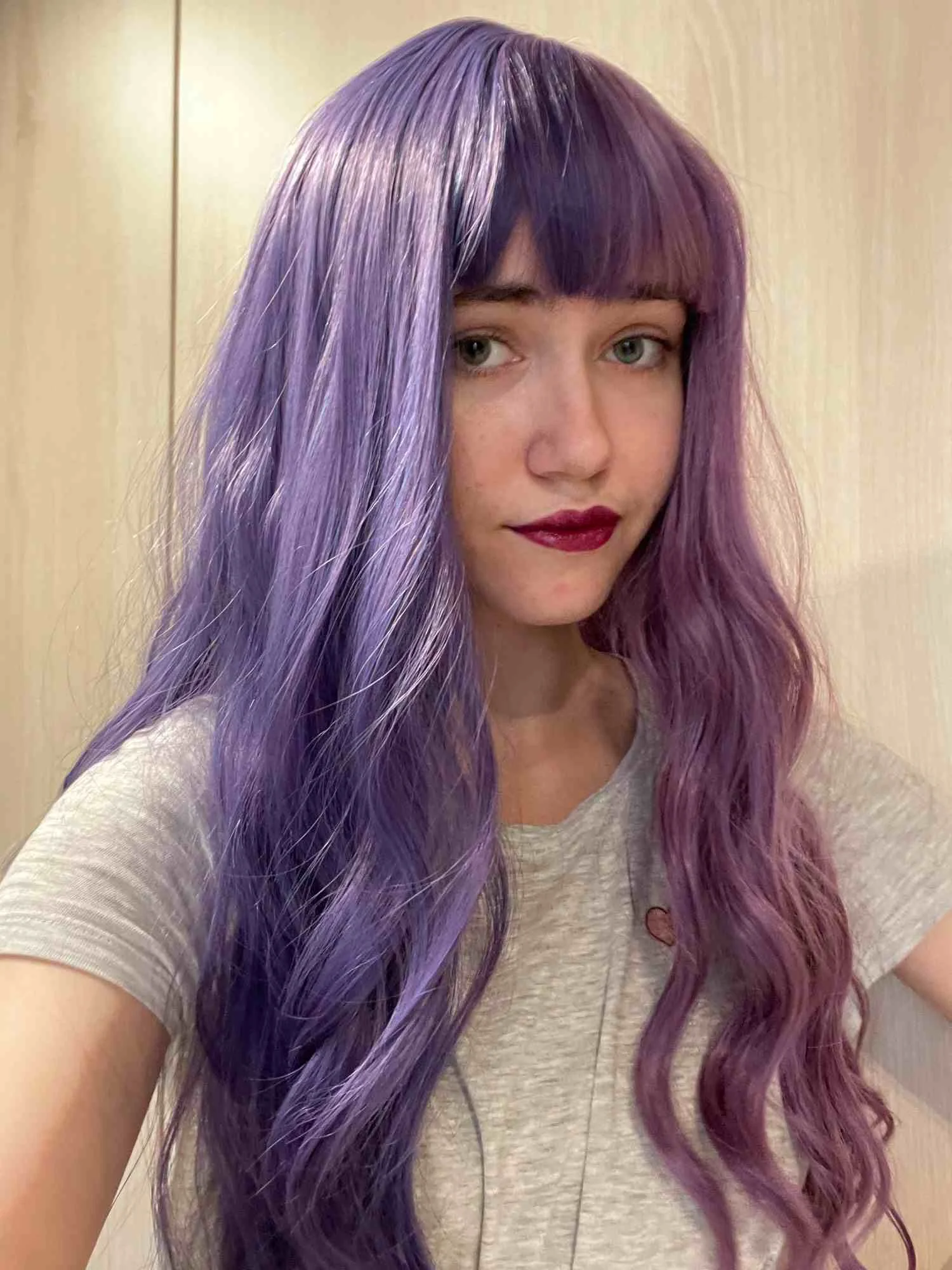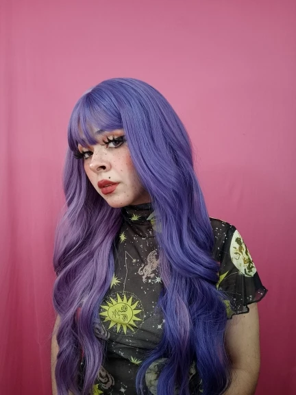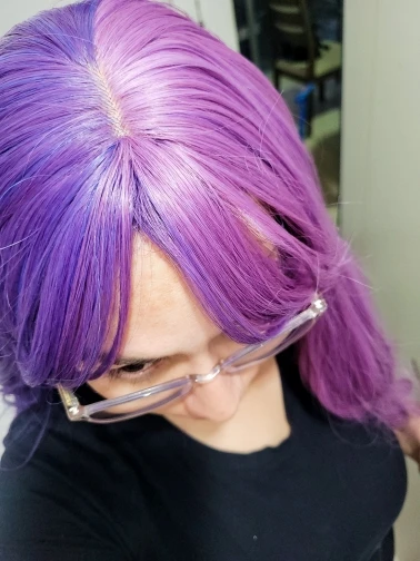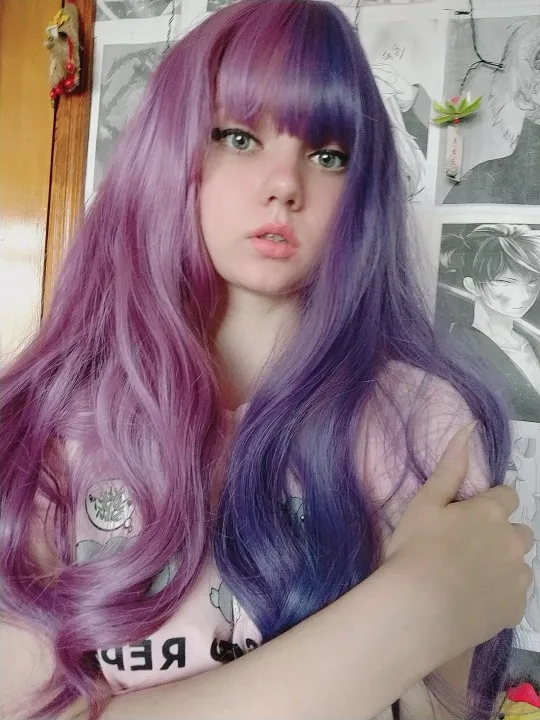 Парик великолепен! Парик мягкий, легкий и заправленные плотно, без проплешин! Настоятельно рекомендуем! Парик поставляется в два цвета, это фиолетового цвета с разной яркости, это очень круто (красивая), поэтому вы можете полностью доверять продавца фото