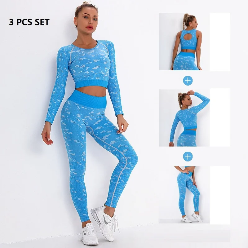 Комплект для йоги Женская бесшовная Спортивная одежда для тренажерного зала с длинным рукавом Леггинсы для фитнеса одежда для велоспорта спортивный бюстгальтер спортивный костюм женский тренировочный костюм
