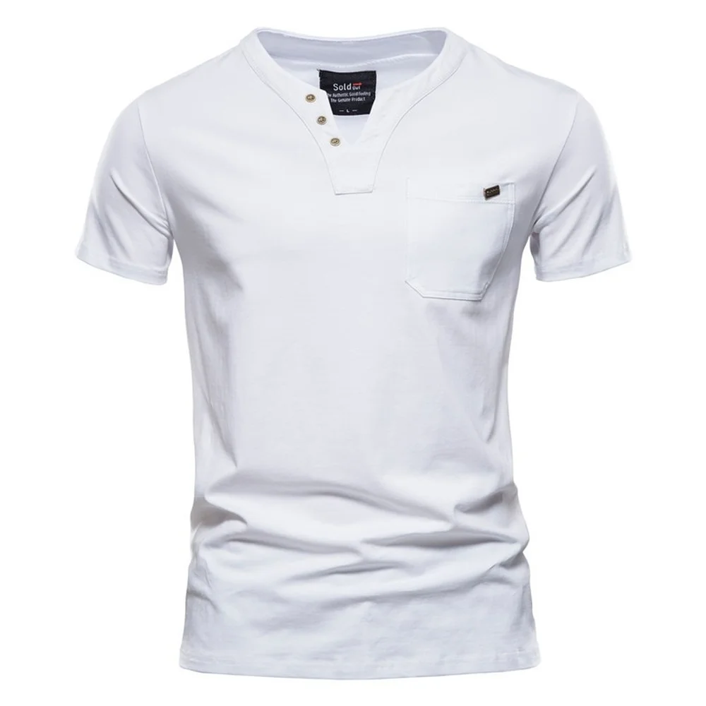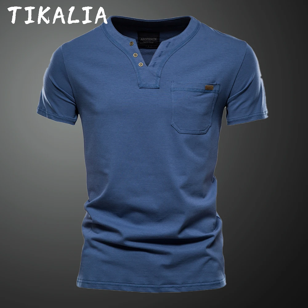 Футболка мужская с V-образным вырезом, хлопок, короткий рукав, Повседневная модная Однотонная рубашка, облегающая рабочая одежда, лето