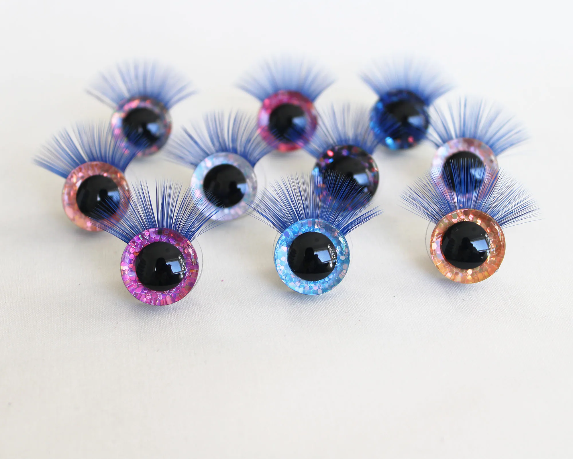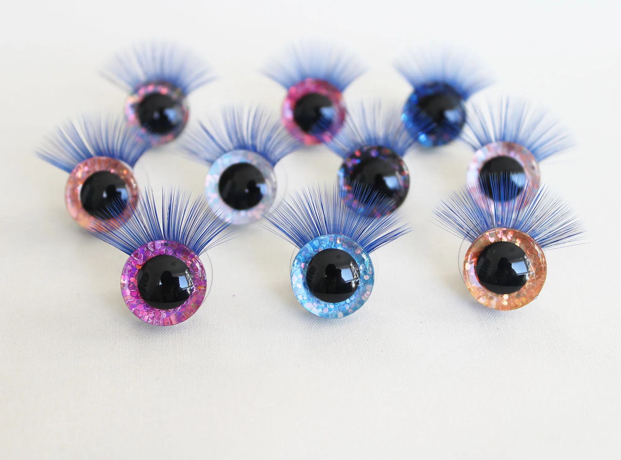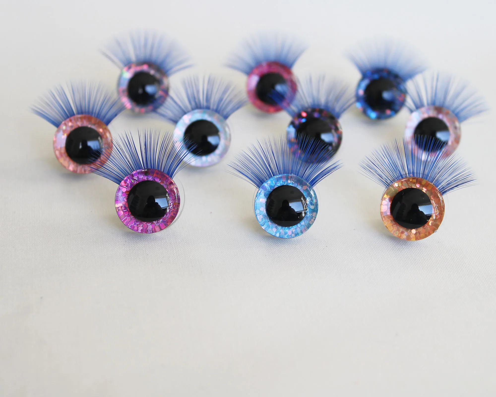 Глаза крафтовые с блеском, 14-30 мм, с синими ресницами и твердой ш...