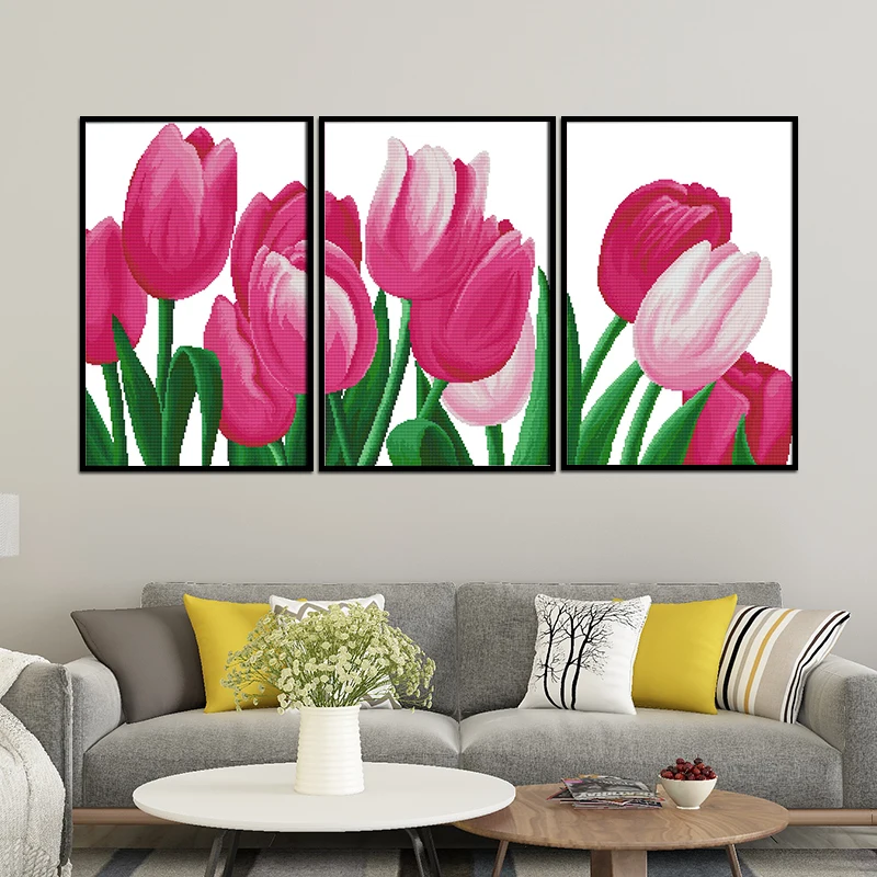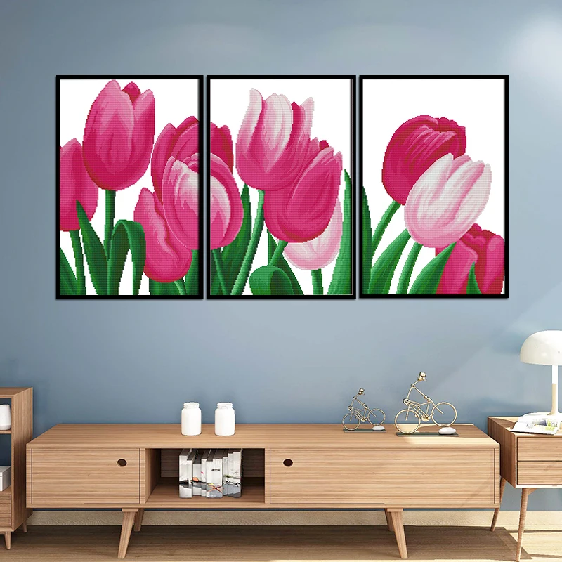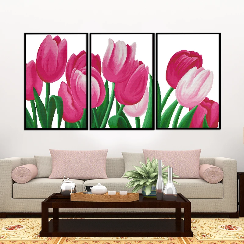 Joy Sunday DIY Набор для вышивки крестиком Цветущий цветочный принт Китайская вышивка рукоделие для украшения дома или гостиной