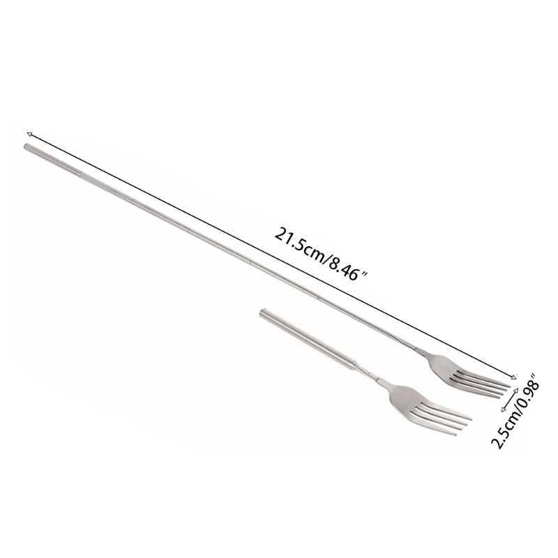 Серебро Нержавеющая телескопическая раздвижная вилка ужин фруктовый...