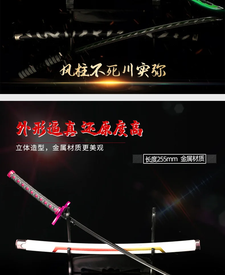 Denom Slayer Kimetsu no Yaiba Аниме Манга меч нож оружие реквизит для косплея модель игрушки с ножомМатериал изделия: цинковый сплавВысота изделия: 25,5 смПроцесс: Гальваническое покрытиеУпаковка продукта: всасывающая бумага для картПодходит для подарков: подарки на день рождения, коллекционные модели, украшения для домаПримечание:1. Из-за различных методов измерения и инструментов возможна погрешность в 1-3 см, что является нормальным.2. Так как цвета разных мониторов отличаются, в товаре может быть какая-то разница в цвете, пожалуйста, обратитесь к полученному товару.3. Если у вас есть какие-либо вопросы о продукте, пожалуйста, сначала свяжитесь с нами, и мы дадим вам удовлетворительный ответ.Меры предосторожности:Металлическое оружие, небольшое количество продуктов может иметь недостатки, те, кто против, осторожны, чтобы сниматьНожи не могут быть заточены, и пистолеты не могут стрелять пулямиДемонстрационные стойки для съемок товаров необходимо приобретать отдельно, и подарок будет четко напоминатьТовары, продаваемые в этом магазине, не могут быть окантованы, они являются чисто комическими коллекциями и оценками ремесел!