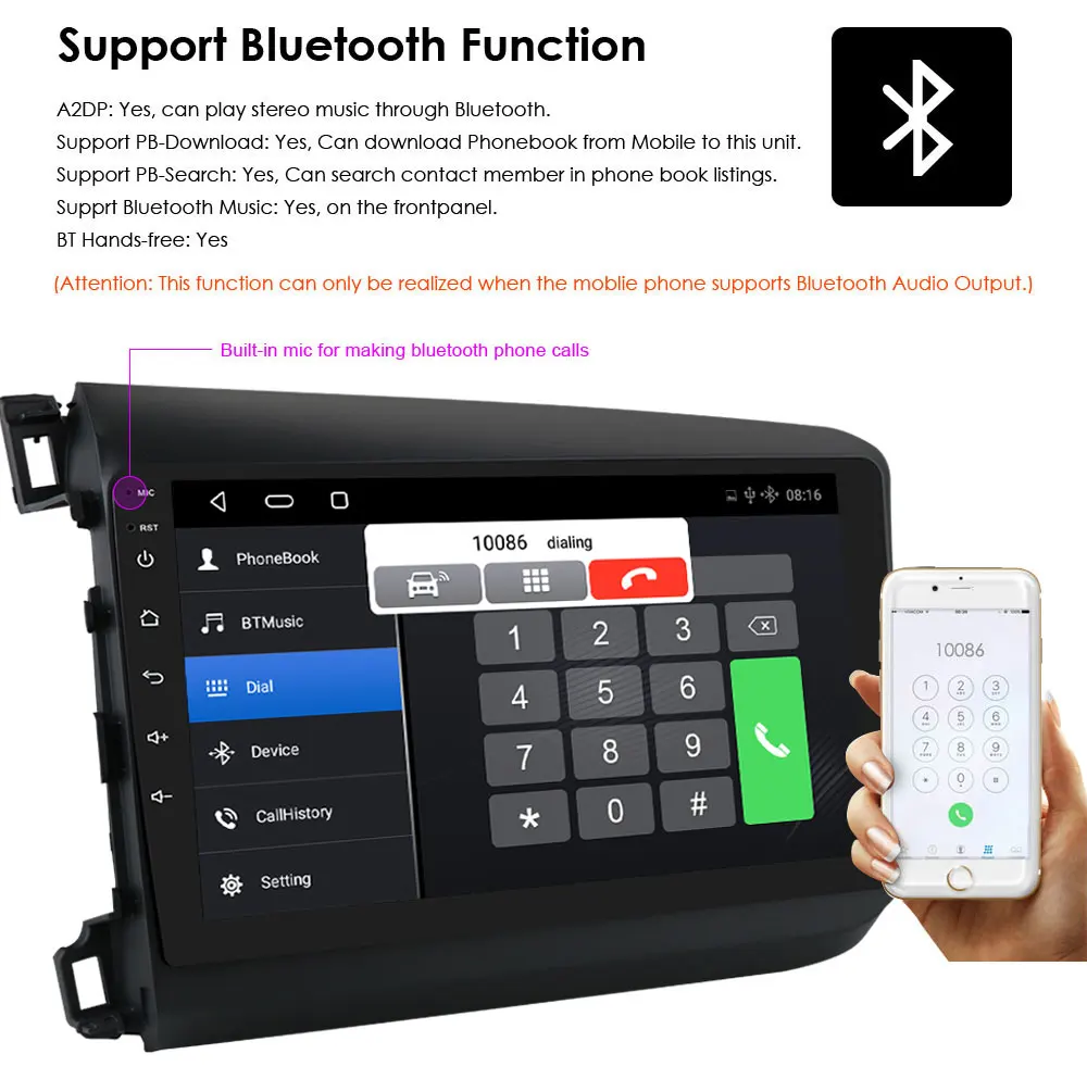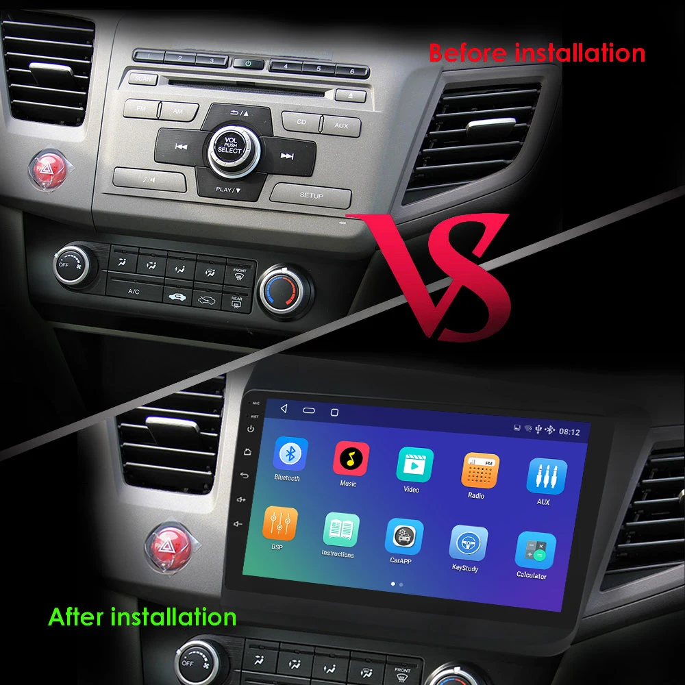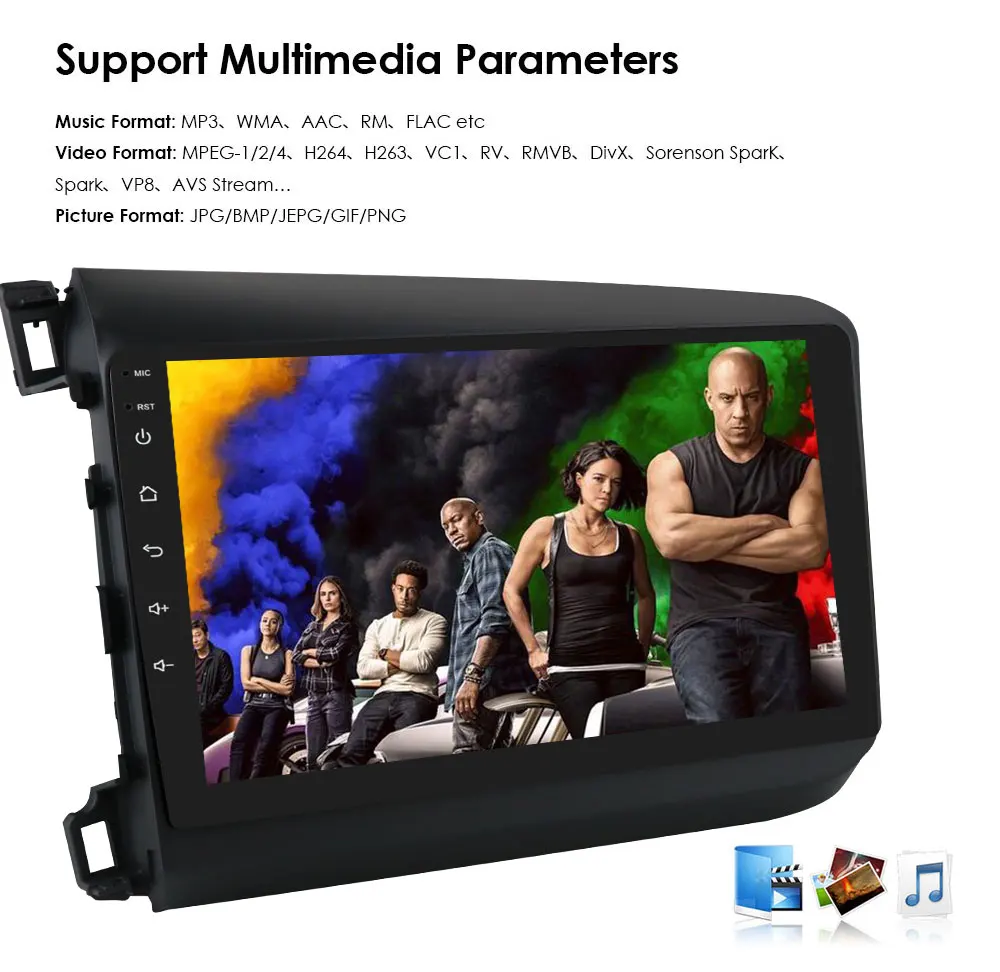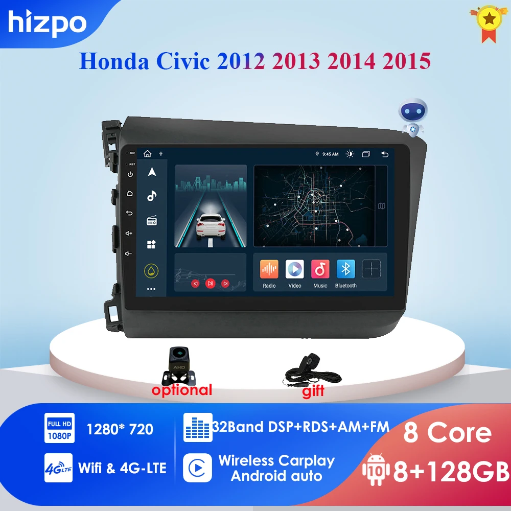 Мультимедийная магнитола Carplay, мультимедийная стерео-система на Android 10, с 9 "экраном, GPS, для HONDA CIVIC 2012-2015, типоразмер 2DIN