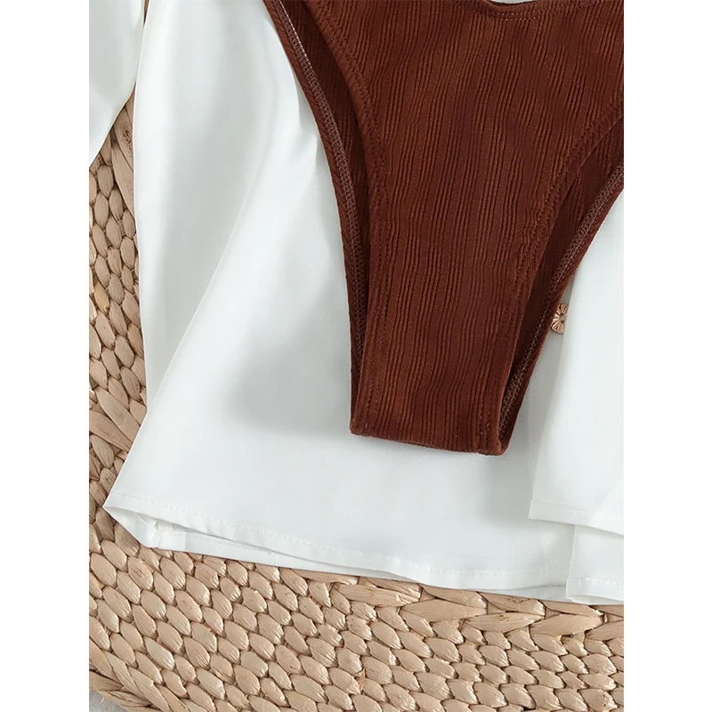 2021, бикини с одним плечом, бандо, набор, однотонный, ребристый ку...